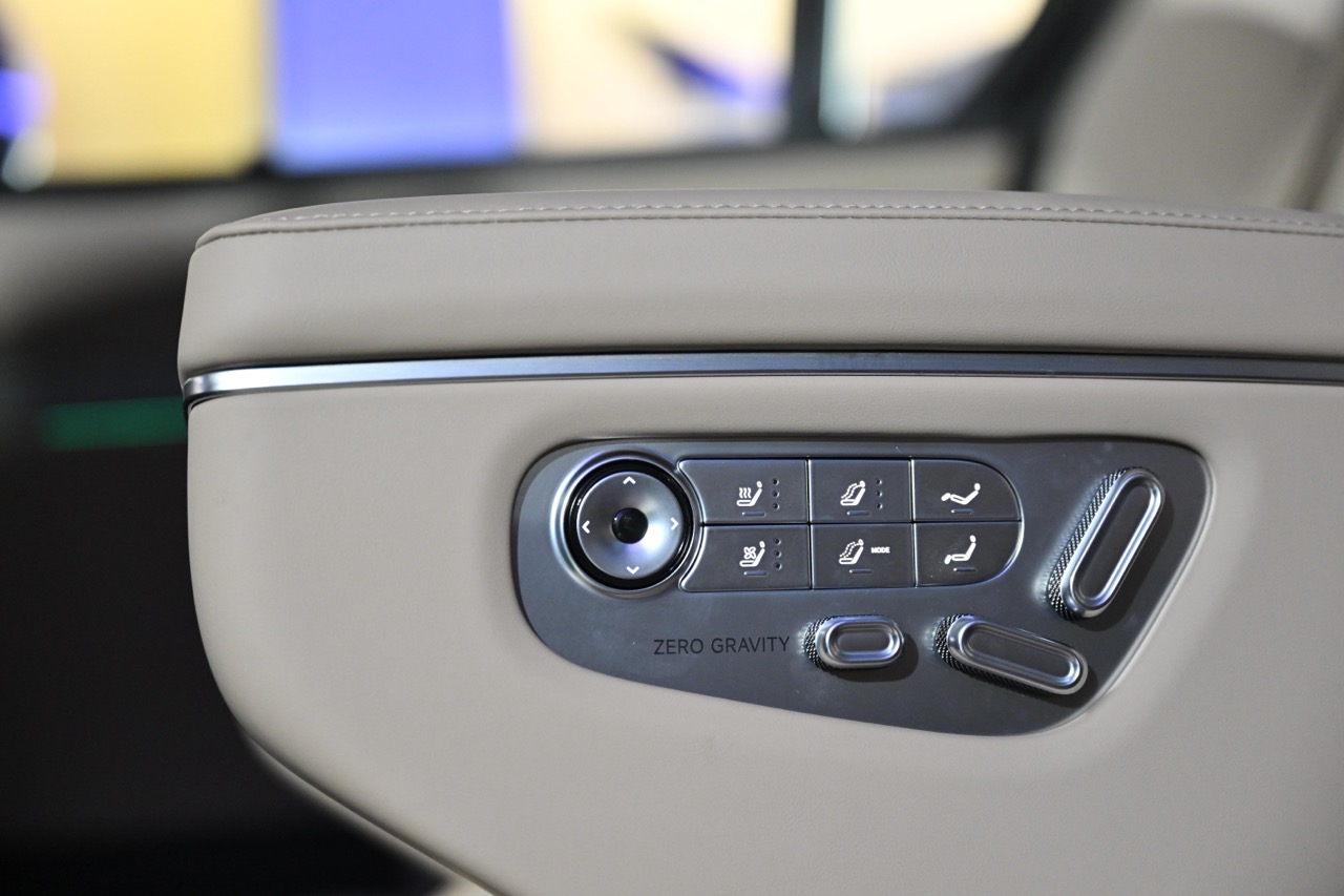座艙設計則展現了奢華與機能的完美結合。車內採用業界唯一的三排電動三折疊座椅,支援 4 至 7 座的多種配置轉換,靈活應對不同載物或乘車需求。為了提升靜謐性,新車導入了 RNC 座艙主動降噪技術,透過音響發放反向聲波抵銷路噪,並在前方配備雙側靜音電索門。娛樂系統則升級至 21.4 吋超大屏幕,結合 27 個揚聲器的劇院級音響系統,配合 3.6 米環繞式氛圍燈,打造出高品質的流動休閒空間。