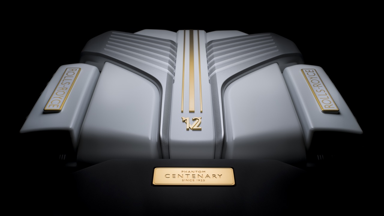 Phantom Centenary 的星空車頂以逾萬針刺繡構成,繪出品牌創始人Henry Royce與夥伴在桑樹下構思未來的經典時刻。閃耀的星光之間藏有蜜蜂與玫瑰圖案——分別象徵古德伍德養蜂場與品牌獨家培植的Rolls-Royce玫瑰。細節之豐富,甚至隱藏對早期秘密工坊“The Treasury”的致敬。引擎蓋以極地白塗裝配金色細節點綴,呼應象徵力量與榮耀的V12引擎核心。整體散發出一種典雅而不張揚的氣場——正如百年來每一部Phantom所代表的:權力、藝術與時間的結晶。