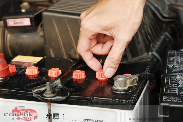 汽車電池大多數在引擎室中,先打開引擎蓋,找出電池。汽車用的水電多是 6 個電池水蓋,把它們扭開即可。