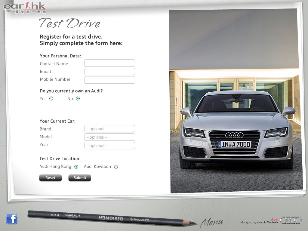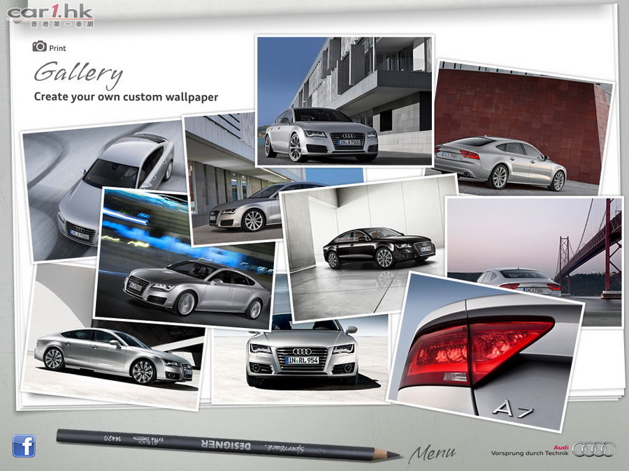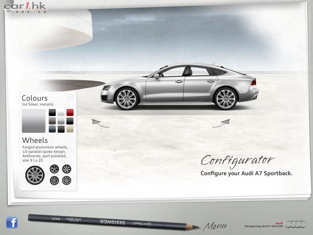 Audi 最新開發的 “Audi A7 Sportback Hong Kong” iPad App,車迷便可透過此程式即時體驗車款的攝人魅力及觀看產品資訊。車迷不但可於 “Audi A7 Sportback Hong Kong” iPad App 獲得品牌最新動向、汽車詳細資料,收看產品高像素影片以及下載官方 Audi A7 Sportback 桌布之外,更可於全新平台上根據個人喜好選擇車身顏色以及其他配件、率先預覽最個人化的車身外型。如想進一步體驗 Audi A7 Sportback 的動感魅力,更可即時於平台上預約試駕服務。方便用家的互動介面,定能拉近 Audi 與車迷的互動性。