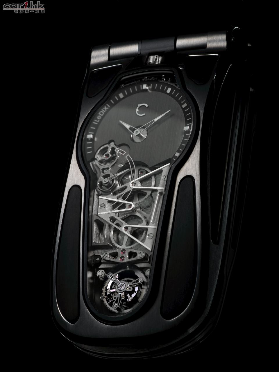 高智能科技品牌 Celsius X VI II 推出全球首部配備陀飛輪時計的流動電話 LeDIX,除了滿足對通訊設備具備嚴謹要求的品位人士之外,更以優秀技術及卓越的整飾工藝,別開生面地於流動電話上加入細緻精準的懸浮式陀飛輪裝置,叫一眾愛表人士一見傾心。獨具一格的陀飛輪機芯,由每個流動電話的開關動作提供動力──每一次把電話打開,專利的 Remontage Papillon 蝴蝶形上弦裝置就會為陀飛輪機芯提供三小時的動力,最高的動力儲存量為 100 小時,堪稱神乎其技!LeDIX 陀飛輪流動電話的流線形設計以跑車為藍本,並以拋光 5 級鈦金屬打造,集功能、創意及美感於一身,為時尚尊貴的奢華典範。
