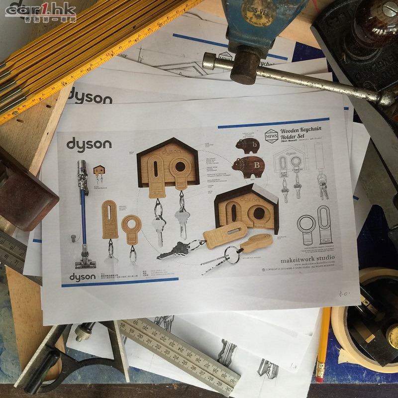 Make-It-Work Studio由草圖至物料挑選,均以人出發,設計出既實用安全又耐用的木製匙扣。Dyson科技提供安全舒適的家居環境,特別融合兩款適合四季使用的無葉風扇和風扇暖風機為原型,配合Dyson用家時尚的家具設計。匙扣組合更貼心加上一個屋仔設計的磁石底座讓匙扣「回家」。