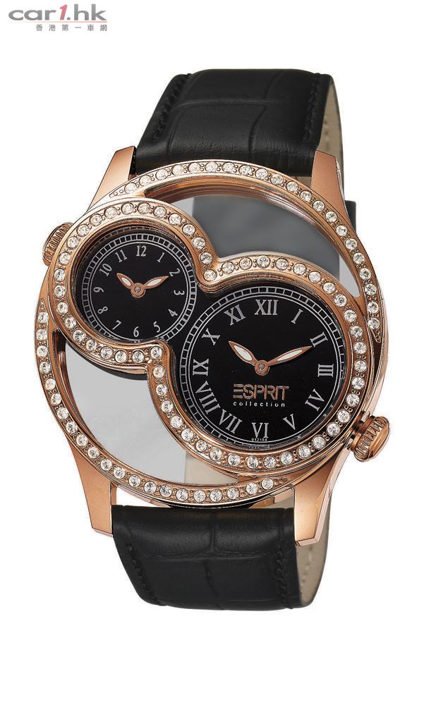 ESPRIT Collection 最新推出 Metess 系列女性時計腕錶,錶面採用葫蘆形雙圈設計,不銹鋼外圈鑲滿閃石,以透明底襯托,輕易帶出標誌著女性葫蘆身形的設計概念。再配上鱷紋皮錶帶,高貴、華麗之餘,更十分耐用,絕對並非華而不實。 ESPRIT Collection 獨特創新的構思,其雙邊調校時間設計,在市面上十分罕見。