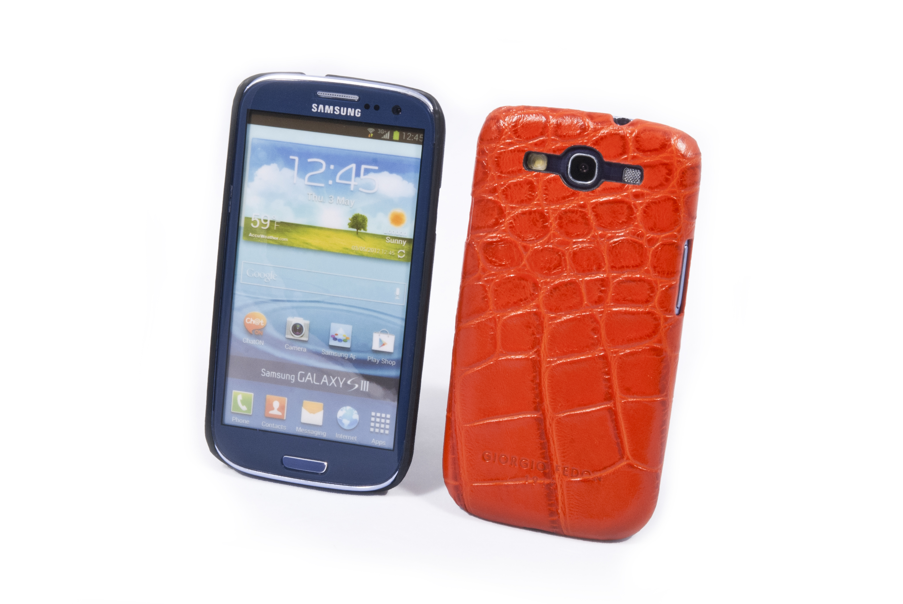 Giorgio Fedon 1919 的 Galaxy S III 保護套備有黑色及橙色的 Nappa 皮,和鱷魚壓紋皮,以及紫紅色與灰色的蛇壓紋皮選擇。由於用上優質的意大利皮革製造,故此不論將 Galaxy SIII 放在口袋或公事包,保護套均能提供最佳保護。