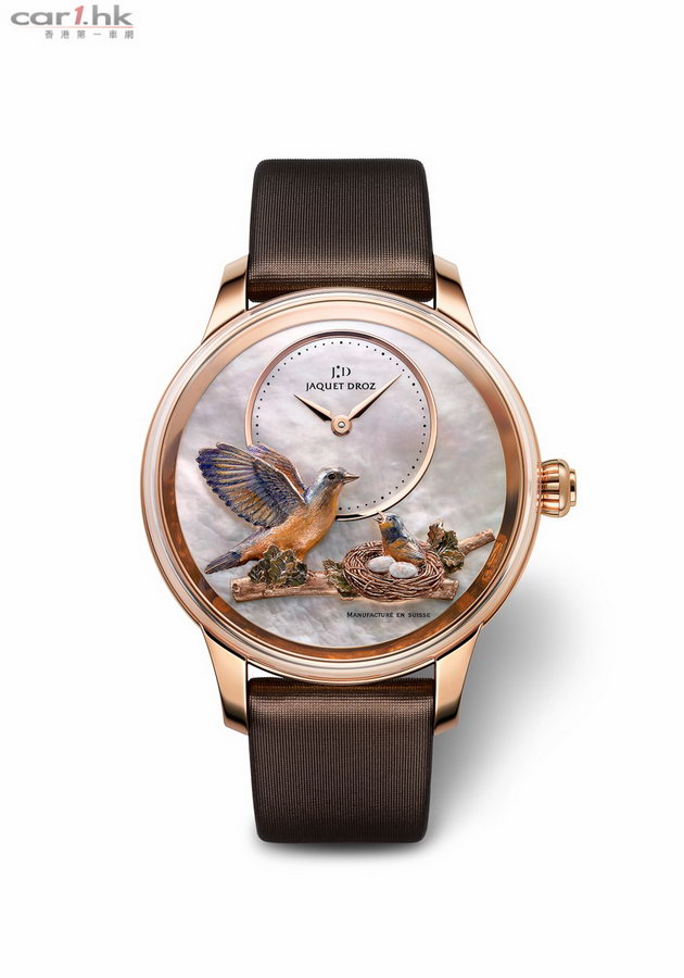 擁有 273 年歷史的雅克德羅 Jaquet Droz 曾以活動玩偶及鳴鳥機械聞名於世,廣受歐州皇室讚賞,並於清朝年代為中國皇室製造鐘錶珍品,被清朝乾隆皇帝賜名「雅克德羅」。以大明火琺瑯工藝見長及表盤上典型的阿拉伯數字「8」設計標誌,延續其不朽工藝與精湛技巧 ,致力創造永恆的傳奇。