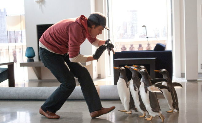 占基利一向以喜劇聞名,今次這位笑匠就率令六隻企鵝一起回歸大銀幕。他這次不再是那絕望無路的搞怪盗賊,不再是那高挑瘦弱的笨拙球員。今次,他化身成紐約曼哈頓的地產經紀,伴隨着六隻嬌小可愛的企鵝來大放笑彈。