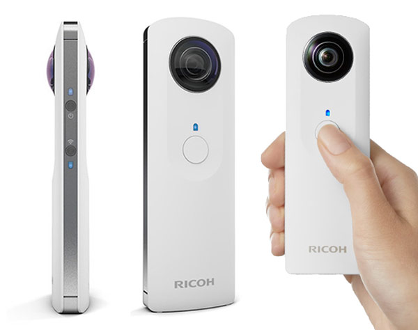 日本製造的RICOH THETA相機前後均配有魚眼鏡頭,影像完美地合拼後達致極廣的視角,做到零瑕疵、零死角的境界。兩個鏡頭同時拍攝,不會因為移動相機而出現重影的問題。RICOH THETA對焦距離從鏡頭前端起算10cm至無限遠。支援ISO 100至ISO 1600自動感光度,1/8000 至 1/7.5 秒快門速度,更配備自動曝光及自動白平衡。相機內置無線WIFI,連接手機遙控拍攝或利用RICOH THETA專有的手機程式把相片分享到社交網站如 Facebook、Twitter等。相機亦內置4GB記憶卡,可保存約1,200張照片。內建鋰離子電池,可透過USB連接線連接電腦充電。
