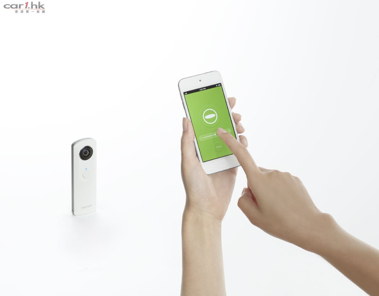 RICOH THETA與智能手機接軌,圖像可以通過WIFI即時傳輸至專用同名的免費應用程式〔支援iOS及Android〕查看及下載至手機的相簿中。用家可以在專用的應用程式中放大縮小、旋轉圖像,有如實地重遊影像中的地方,親歷其境。 另外,RICOH THETA與專用的手機應用程式連接後,就能在利用手機遙控釋放快門以及調整曝光補償〔只支援iOS〕。最適合跟一大班朋友聚會時遙距自拍,用家可更專心致志盡情拍攝更多的有趣大合照。