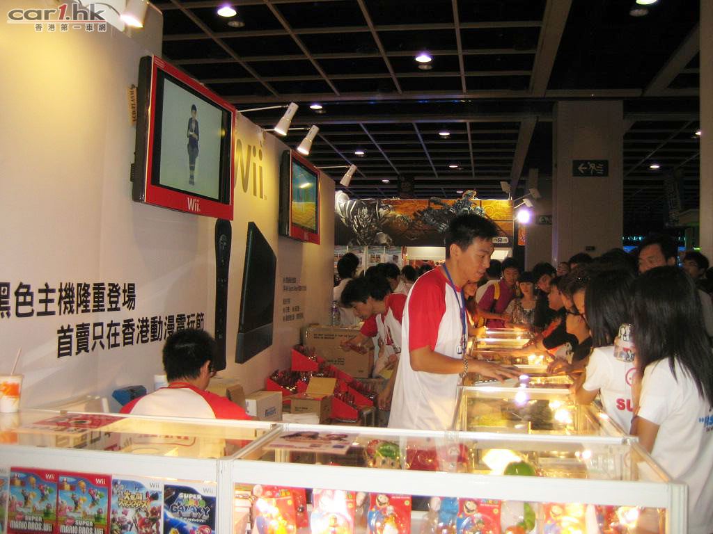 萬眾期待的Wii黑色主機(連Wii Sports Resort繁體中文版)、遙控器和雙節棍控制器在動漫電玩節首賣,單是極具個性的外形已經謀殺不少目光,加上主機附送的Mario系列毛公仔造型得意可愛,銷情相當理想,黑機的吸引力無容置疑。遊戲軟件方面,現場觀眾親身試玩後均表示Wii遊戲設計刺激新穎,新 超級瑪利歐兄弟 Wii(繁體中文版)更成為熱捧對象,許多玩家即場購買主機及遊戲,回家慢慢享受箇中樂趣,令Wii的銷售攤位時刻車水馬龍。
