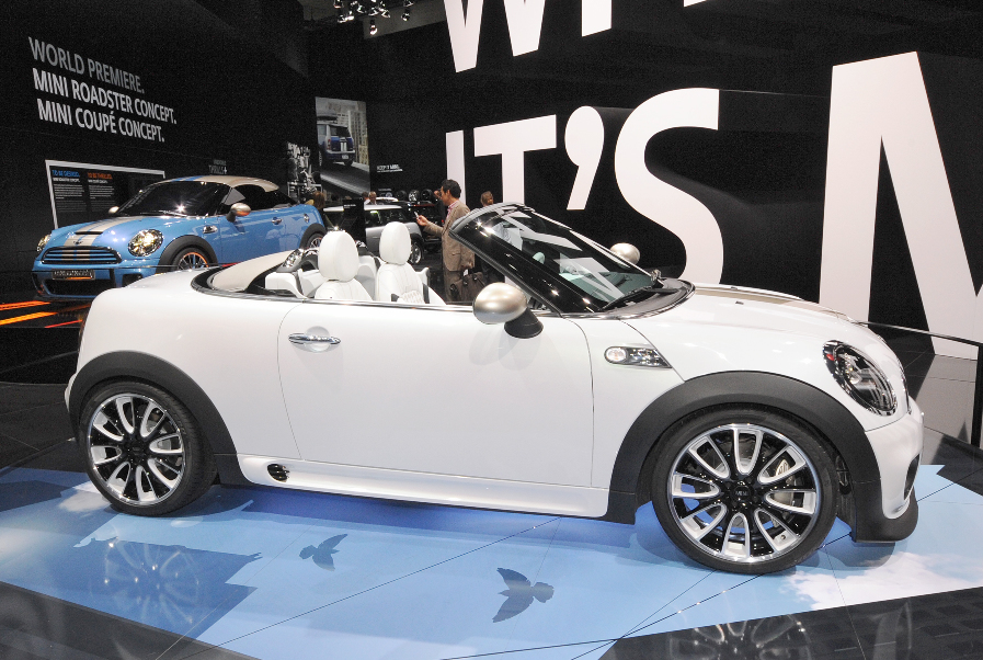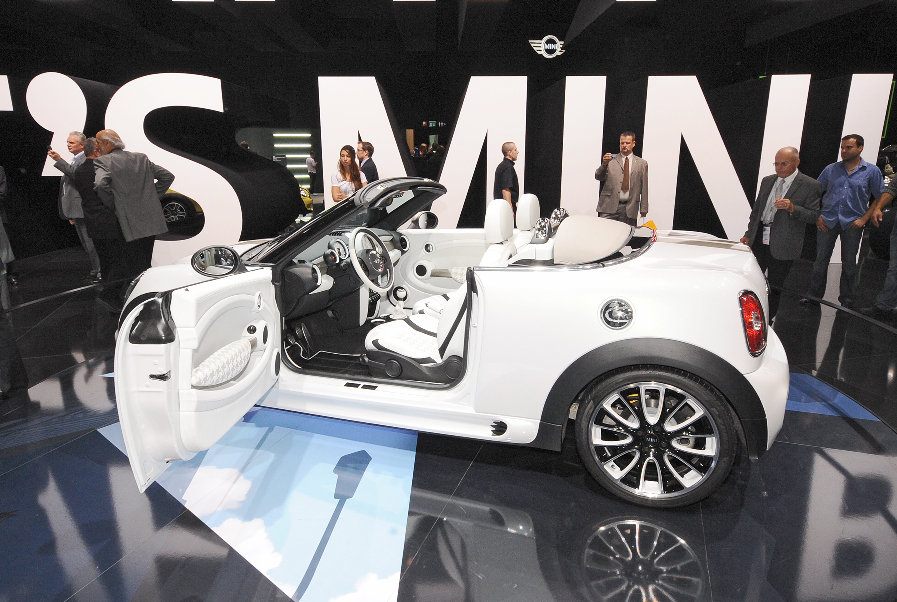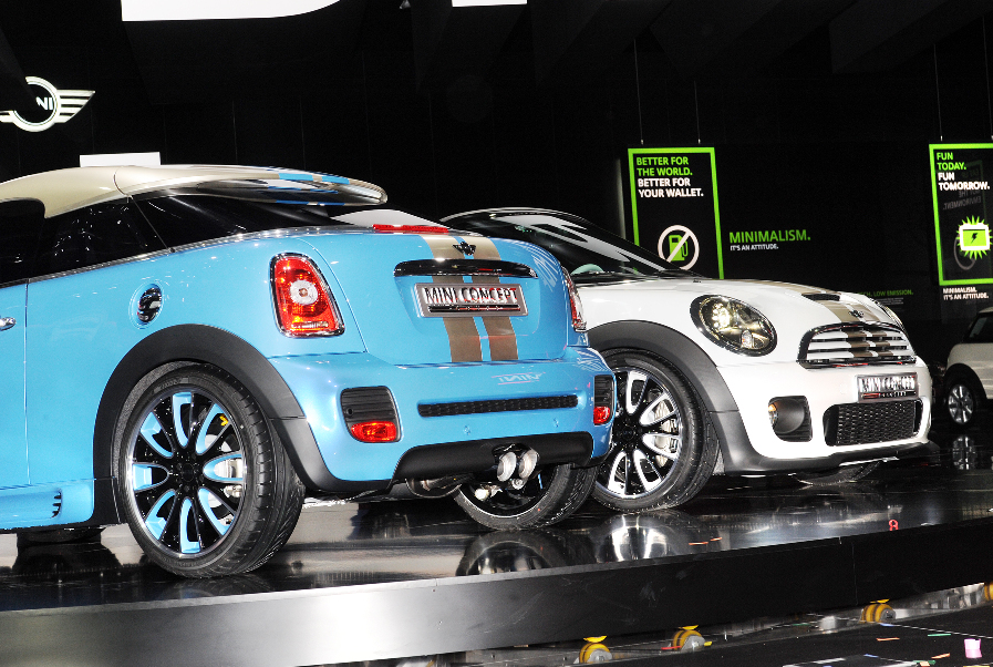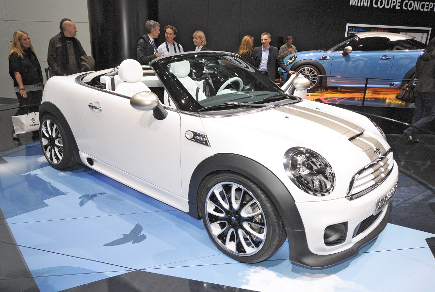 今年是 Min i的 50 周年,Mini 在車展大玩概念車。雖說是概念車,但絕非天馬行空那一種,而是所謂的「準量產概念車」,離正式生產不遠矣。今次展出的包括有房跑 Mini Coupe Concept 及從未曝光的開頂跑車 Mini Roadster Concept。