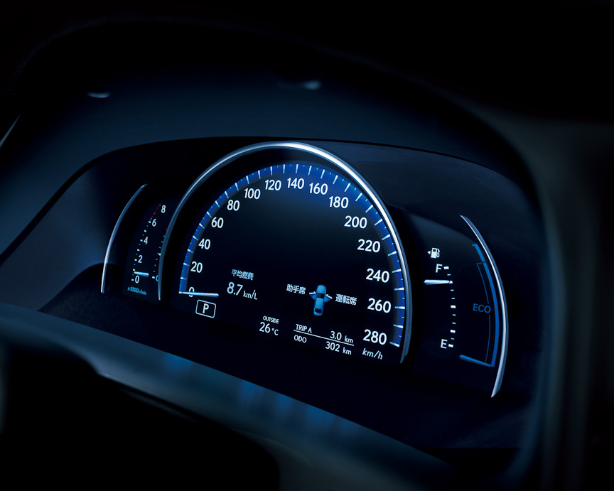 錶版方面,Lexus LS 的錶版以 LCD 顯示屏來顯示資訊,因此它可以顯示出無窮無盡的圖案及資訊,所以 Lexus 以圖案形式在錶版上顯示行車資訊,令駕駛者更了解車子現有狀態。最重要的是,這個設計多是在高級房車才能找到。