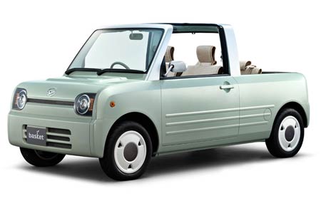 Daihatsu 大發一向專注發展小型車種,原來連農夫車都可以迷你化!Daihatsu 在東京車展發表了兩款概念車,一款是富有大自然色彩的農夫車「Basket」,兩門四座位,前兩座有硬頂,後座為軟蓬。儘管是份屬概念車,就觀看所見,相信如果大發要造此車,估計都不困難。不過內飾的麻布成份不知會否有發霉的機會呢?