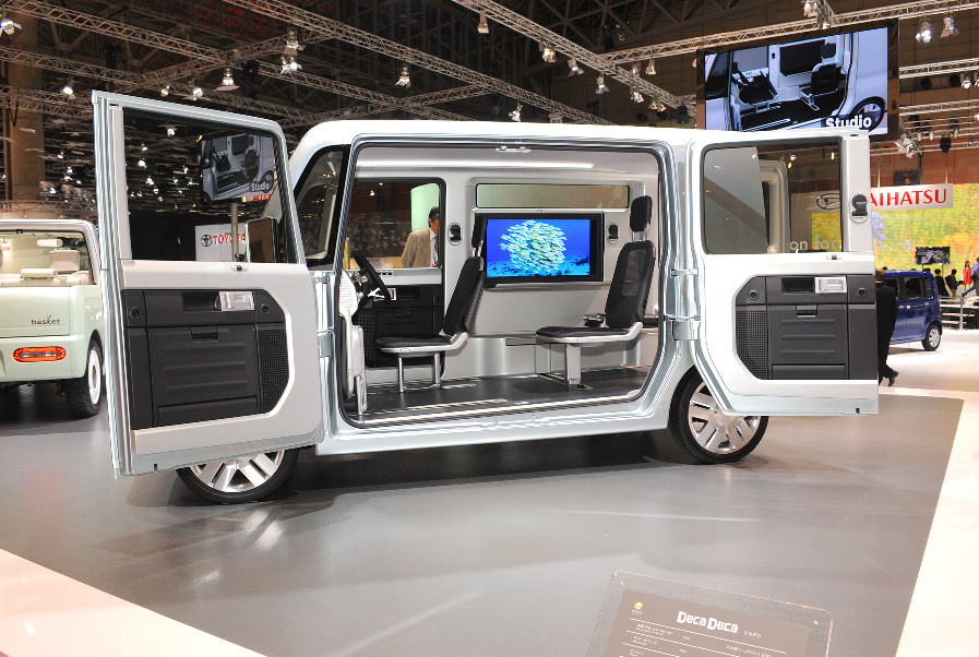 同場加映另一台概念車 Deca Deca,私家車味欠奉,一打開門又似小巴又似貨 Van,特點是實用率極之高﹗咁細部車放咁多野,真係車如其名「得架得架」(Deca Deca)。