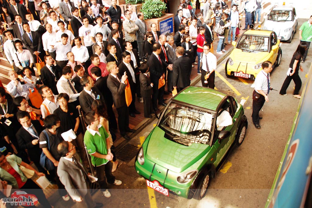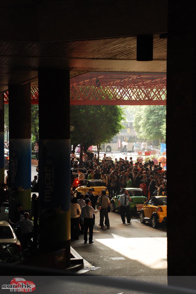 mycar 發布會最後一部份就是「尖東巡遊」;另一邊廂香港特別行政區財政司司長曾俊華先生親身試坐 mycar 後,被香港傳媒包圍,問題當然是試坐感受吧。財爺那麼支持電動車,相信他對 mycar 也相當滿意,始終 mycar 也是由香港之光呢。
