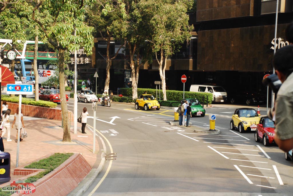 「尖東巡遊」由多架 mycar 列陣,沿途由警方開路。當 mycar 經過一些較多行人的地方時,沿途行人都不禁拿出相機拍攝,可見 mycar 在街上行走的話,收視率也不錯!而巡遊中的 mycar 行駛時車子亦很順暢,與一般汽油汽車沒有分別,作為城市車真的很適合,寧靜、無廢氣絕對是香港需要的東西!如果有一天街上所有汽車也轉為電動車,街上的噪音相信會小很多很多吧。