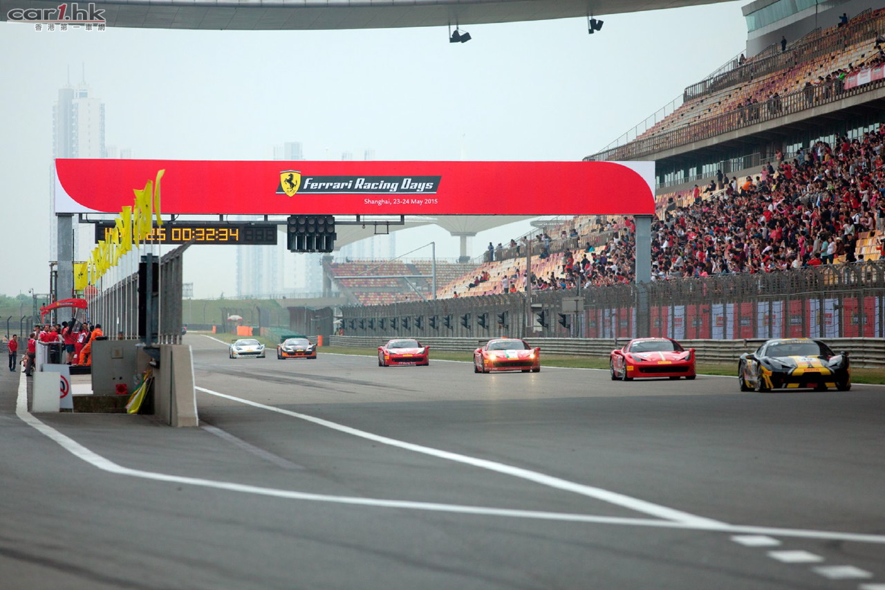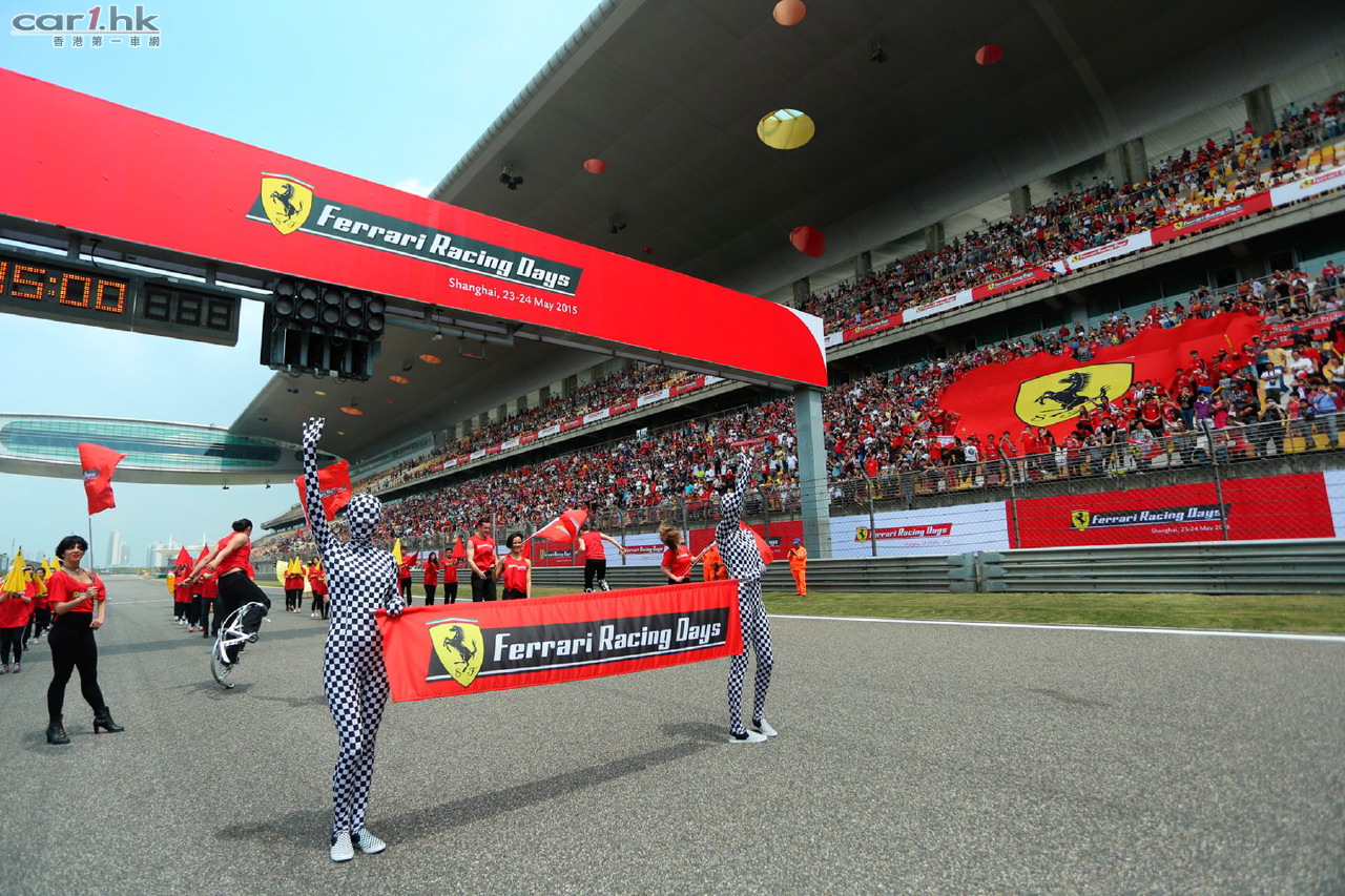 為期兩天的2015法拉利賽道日嘉年華於5月23至24日在上海國際賽車場盛大舉行,在這專屬於法拉利的盛會期間,來自全國各地總計約35,000多位法拉利車主和數萬名車迷齊聚賽道,共同分享法拉利的文化與精神,體驗躍馬帶來的非凡激情。為期兩天的活動將整個上海國際賽車場變成了一片紅色的海洋, 賽道內外豐富多彩的活動為所有現場參與者帶來一個法拉利專屬的紅色狂歡週末。