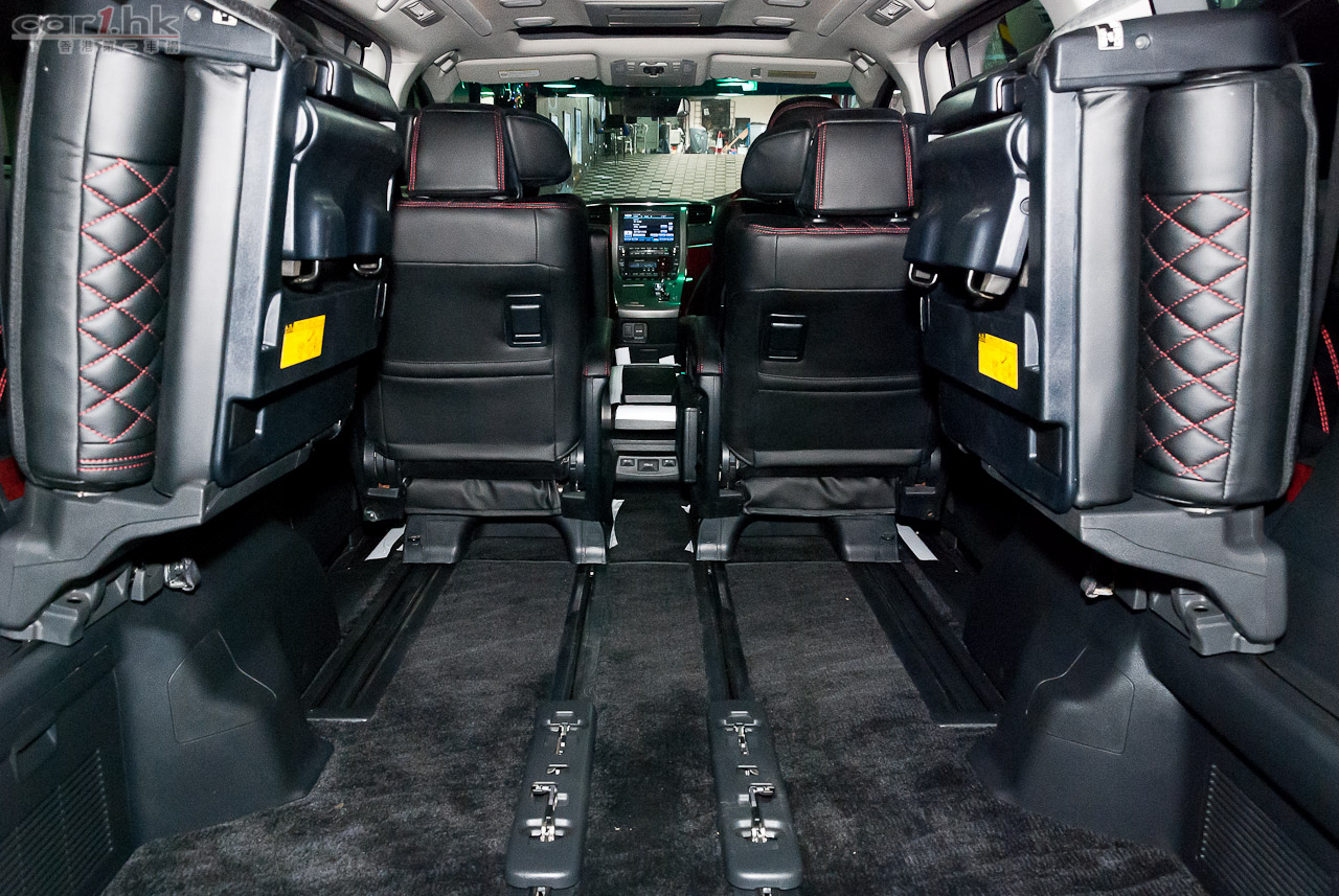 Alpard 備受好評是因為能帶來無可匹敵的乘坐空間和舒適感,猶如飛機商務艙般的前排與中排座,擁有獨立式躺椅,可以完全伸展成為舒適的睡床,而這架易手盤的座椅更採用全新的黑色真皮包覆,並使用紅線縫製,營造出年輕時尚的感覺。除此之外,還有電動敞門、雙天窗、四電動座椅、頂級 18 喇叭音響、10 吋 LCD 影音螢幕等等,齊全設備應有盡有。