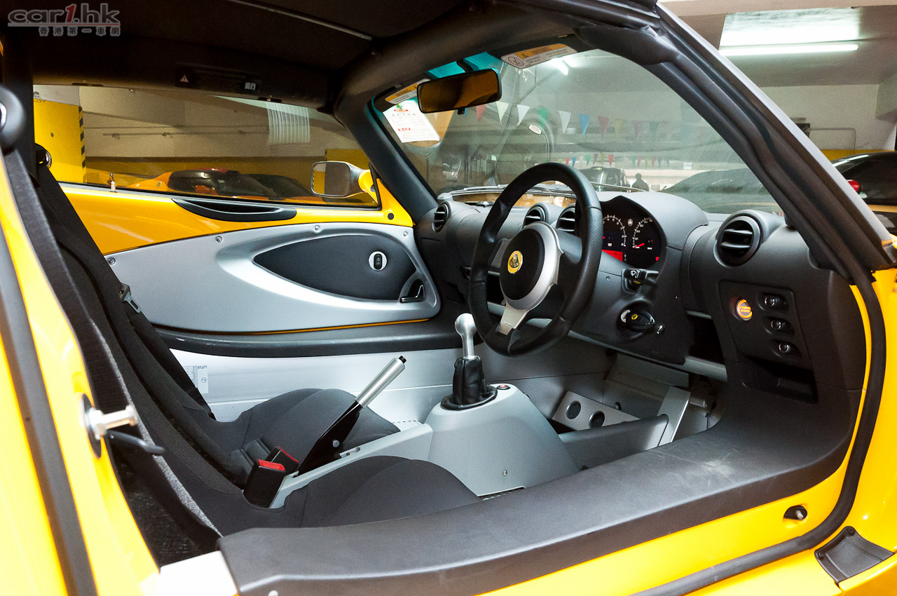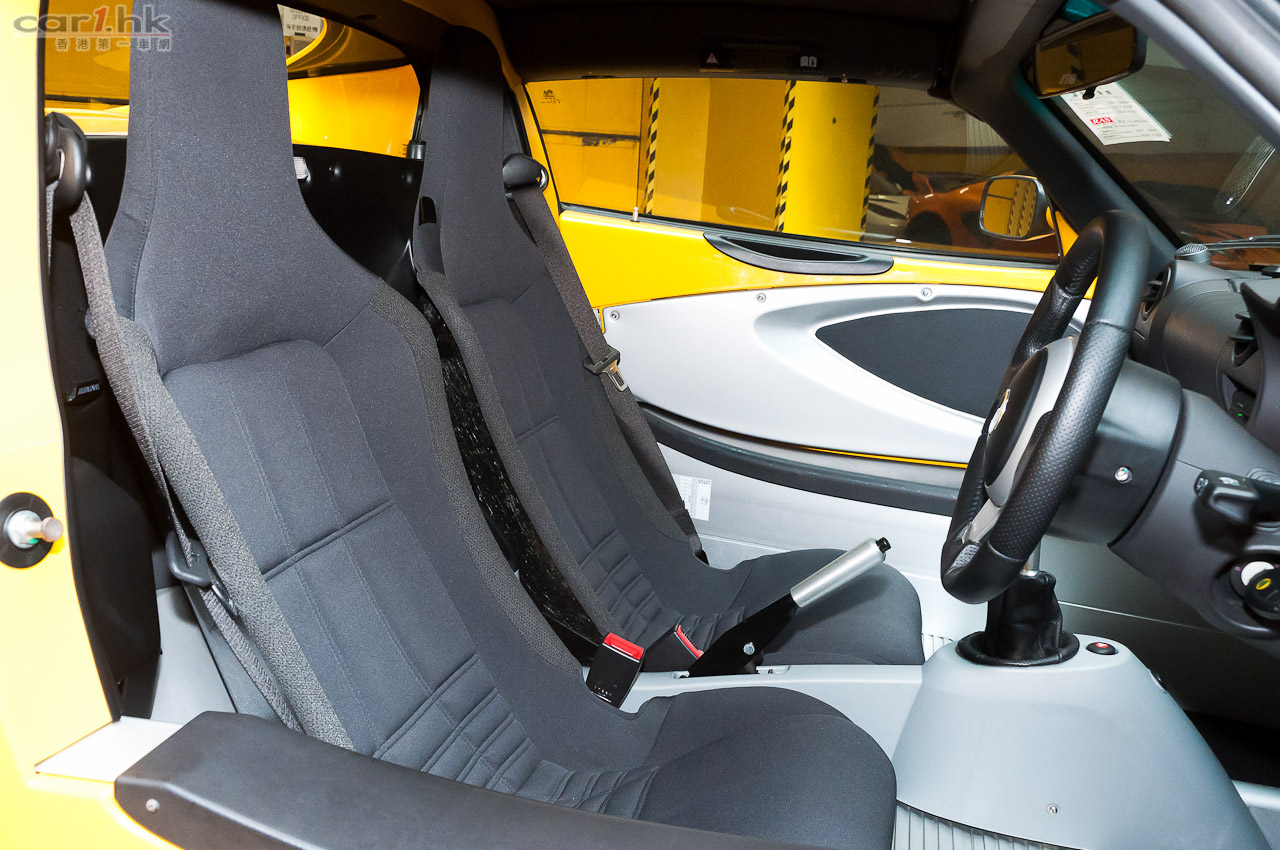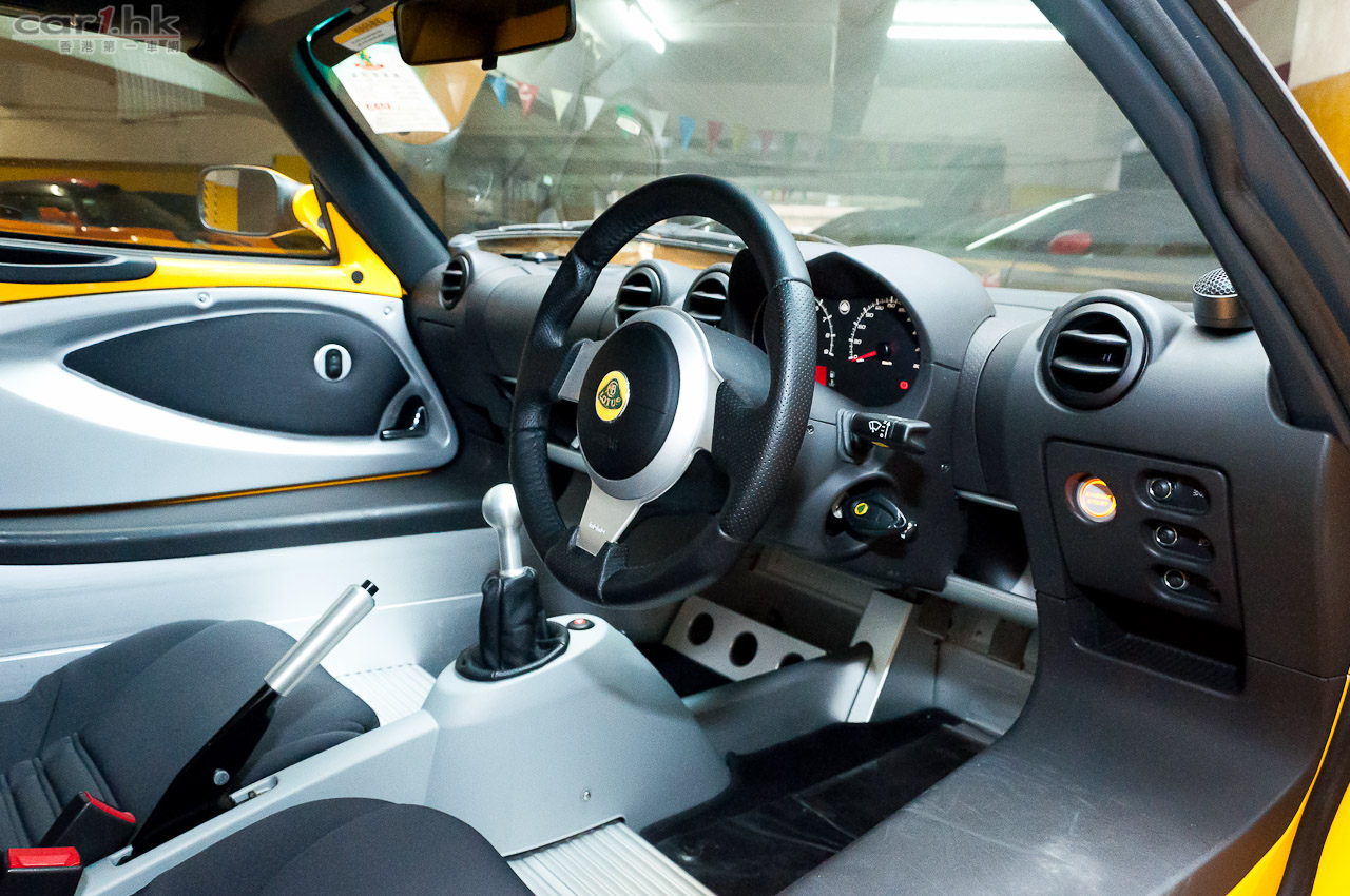 為戰而生的 Elise,為了達到最輕的車重,所以內籠方面完全沒有多餘的設備,唯一的娛樂就只有車機,平時開車最多聽下收音機;雖然如此,車內整體佈局採用賽車規格,方向盤、波棍和手掣等是以賽車的標準來設計,低矮的座椅帶給駕駛者最刺激的跑感,猶如真正在賽道中風馳。