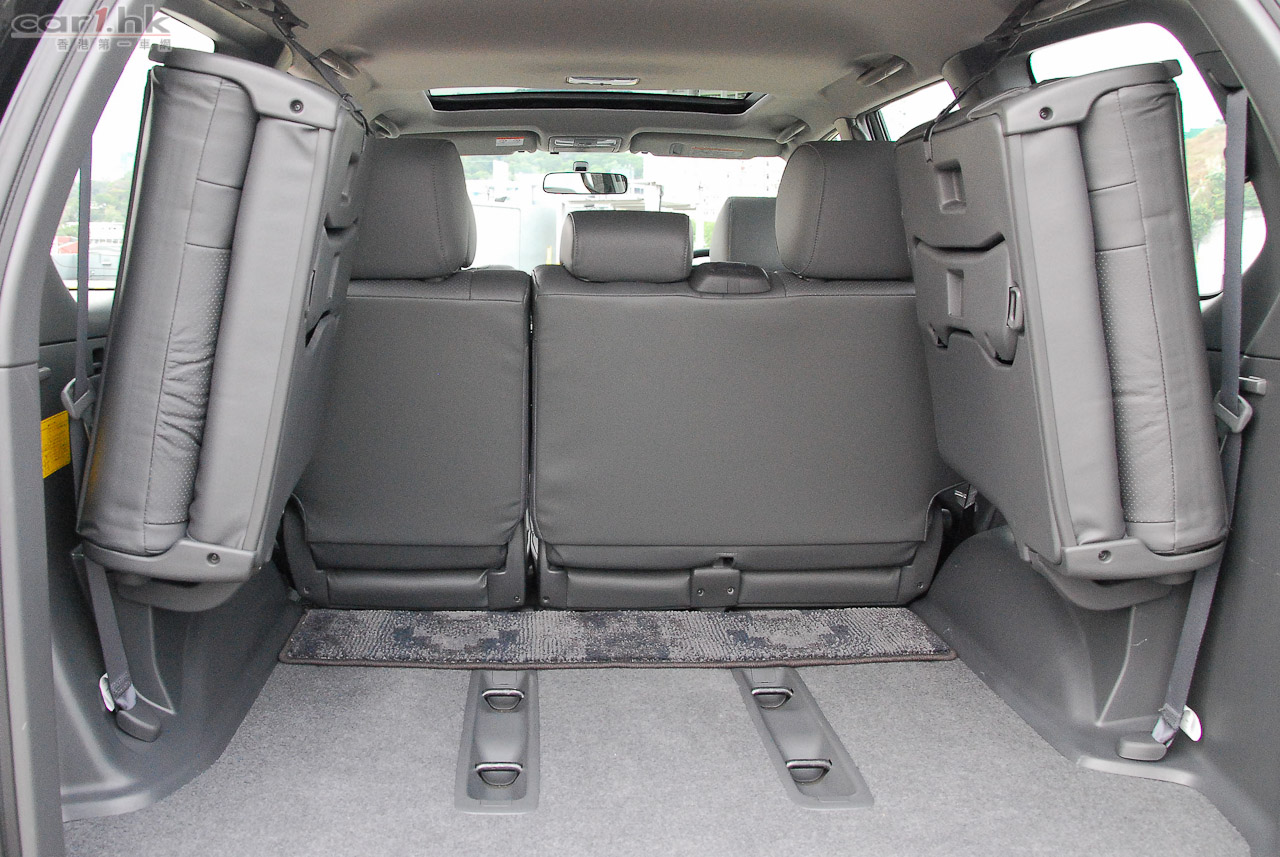 可承載 8 位乘客的 Toyota Land Cruiser Prado 4.0 TX 屬 2008 年易手盤,比起現行的 Land Cruiser Prado,雖然沒有了 360 度的環鏡顯示器,但車頭倒後鏡卻為外表增加氣勢,再加上 17 吋的美國軚鈴,車子散發出濃厚的越野味道。內籠方面,皮革狀態仍然保持新淨,並且配有胡桃木裝飾提升品味。而中後排座椅可分別向兩邊收起及向前摺疊,令到置物容是大大提升,即使擺放單車亦都沒有任何難度。