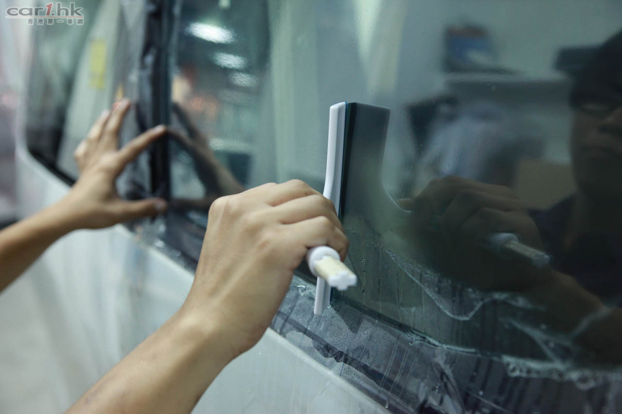 當然除了 3M 汽車玻璃隔熱膜本身出色的效果外,安裝師父的手工亦十分重要,這次就安排去到 3M 的認可施工商「Auto Beauty」進行示範。首先使用自動洗車機清潔車身,完成後便會於無塵房間進一步清潔需要施工的玻璃,之後師父會先測試玻璃透光度,再選擇合適的隔熱膜。接著便可開始施工,先利用車外玻璃做裁紙工作,裁好後便會移除保護膜,再於車內玻璃上紙,然後推走空氣,完成後師父會再測試透光度是否合乎標準。最後還會提供運輸處的申請文件,提醒車主申報有關安裝。