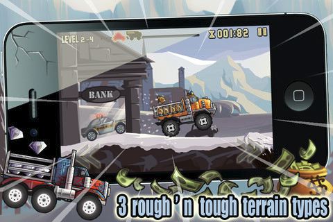平時介紹嘅遊戲大多數都喺以賽車為主,咁次就比較特別,玩家需要操控一部打劫銀行的貨車,逃過警察的追捕之餘,車子在跳躍時候需要左右擺動手機確保貨櫃上的錢袋不會掉出來,而且有高低起伏及山坡等地形,要不同的技巧去應付。