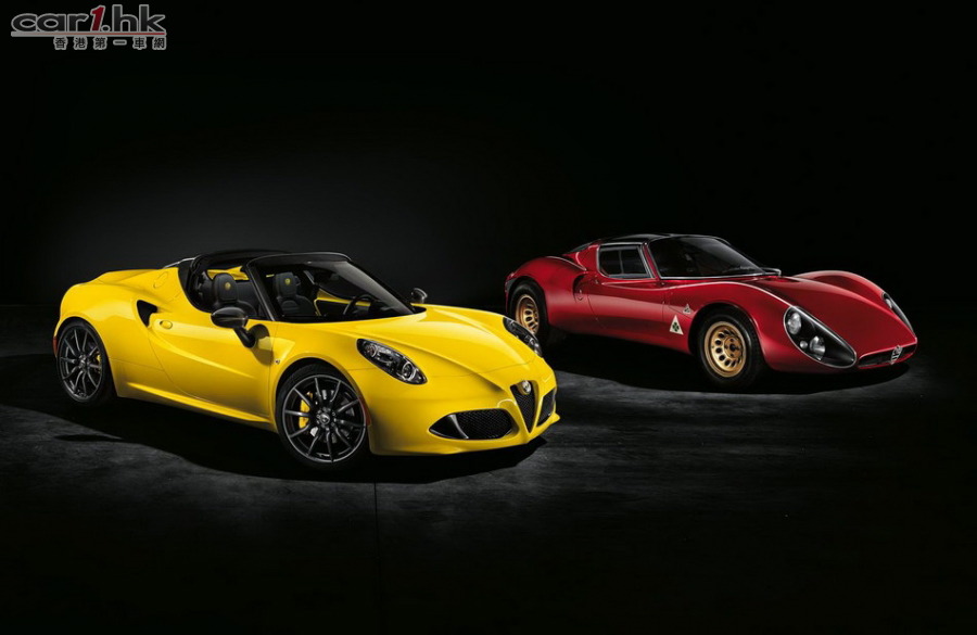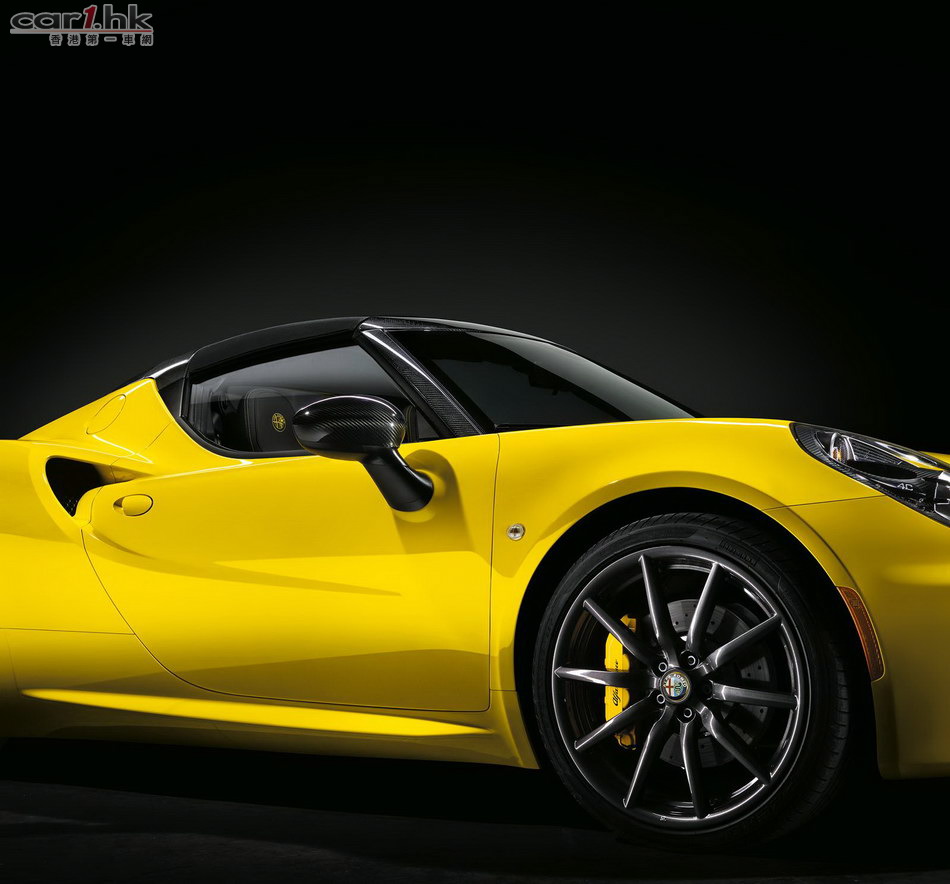 Alfa Romeo 的車設計優美相信大家都知,年初美國底特律車展登場的美版 Alfa Romeo 4C Spyder 很多 Fans 已經很想要,今次歐洲版規格要來了,而這個版本相信更接近香港市場需要。歐洲版會在日內瓦車展出現,還有金鑽黃新配色,車頭燈也用了隻 HIS 投射設備。這部車的前後輪是不同尺寸,前為 17 或 18 寸,後為 18 或 19 寸,白銀、黑銅兩隻款,同樣是 8 爪設計。