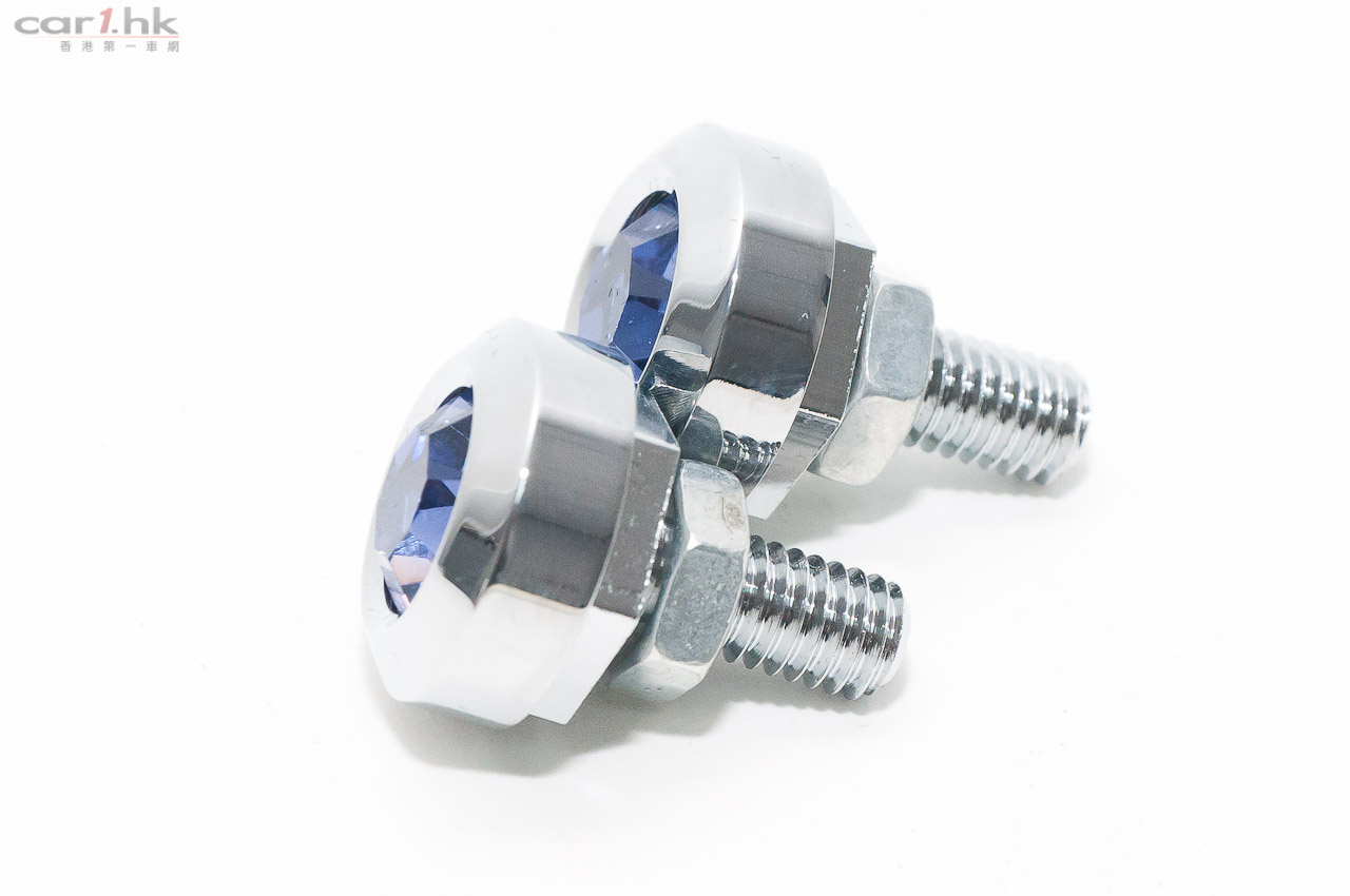 好多時睇街上的車子時,望多落兩眼就會睇下個車牌號碼,因為車牌基本上代表了車主,有的車牌是生日日期,有的是結婚記念日,還有的是好意頭的車牌,總之咩類型都有,唔少人為求突出,仲會去做凸字、水晶或碳纖等等的特別車牌。但其實除咗英文和數字外,仲可以從細微位出發,就好似鎖實車牌的兩粒鏍絲,將原本灰灰沉沉,無厘精神的兩粒鏍絲,換成耀目奪眼的閃石鏍絲,即時成個靚仔晒。