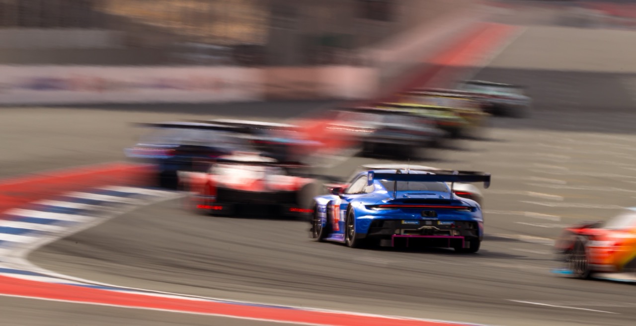 第三回合的首場四小時激戰極具策略性,安全車頻繁出現打亂各支車隊的部署。在開賽約 30 分鐘,區天駿為避開與一輛 LMP2 組別賽車碰撞而被迫駛離跑道,撞上賽道上的指示泡沫板導致散熱水箱受阻,需緊急進入維修站處理。Manthey Racing 的工程團隊反應迅速,隨即果斷調整作賽策略應對。