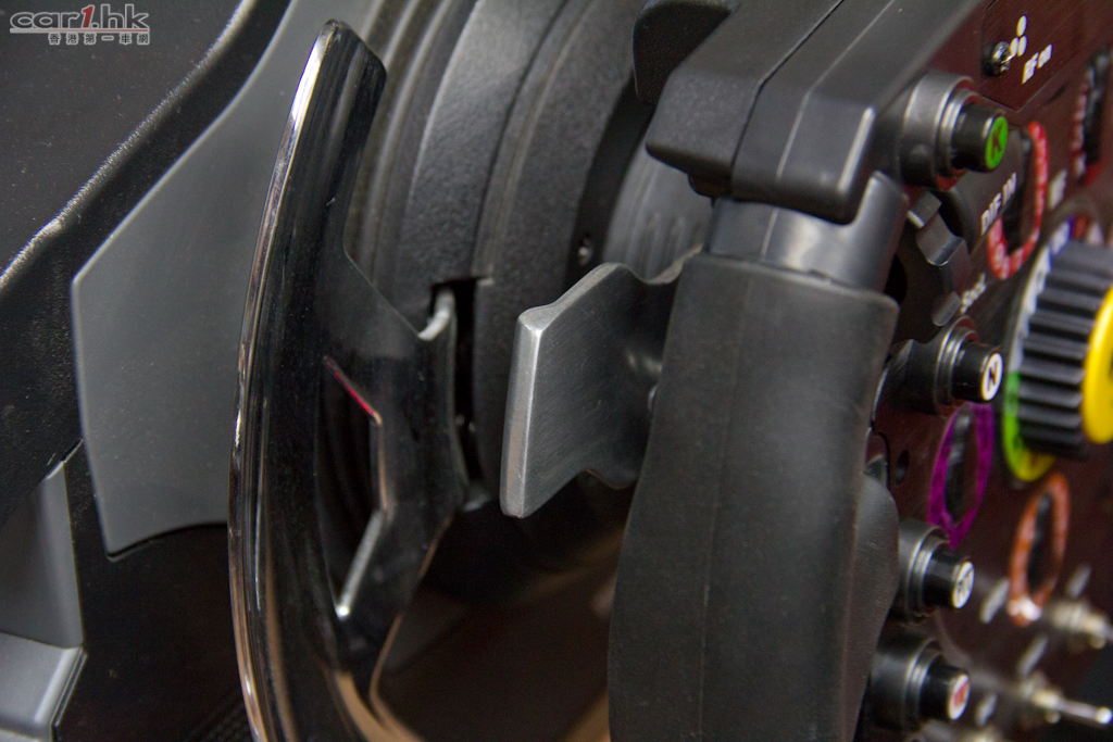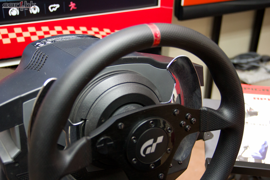 不得不說試玩後軚盤 Thrustmaster T500RS 不論握感、轉向感及震動感也十分出色,而且還有大大塊的轉檔撥片。