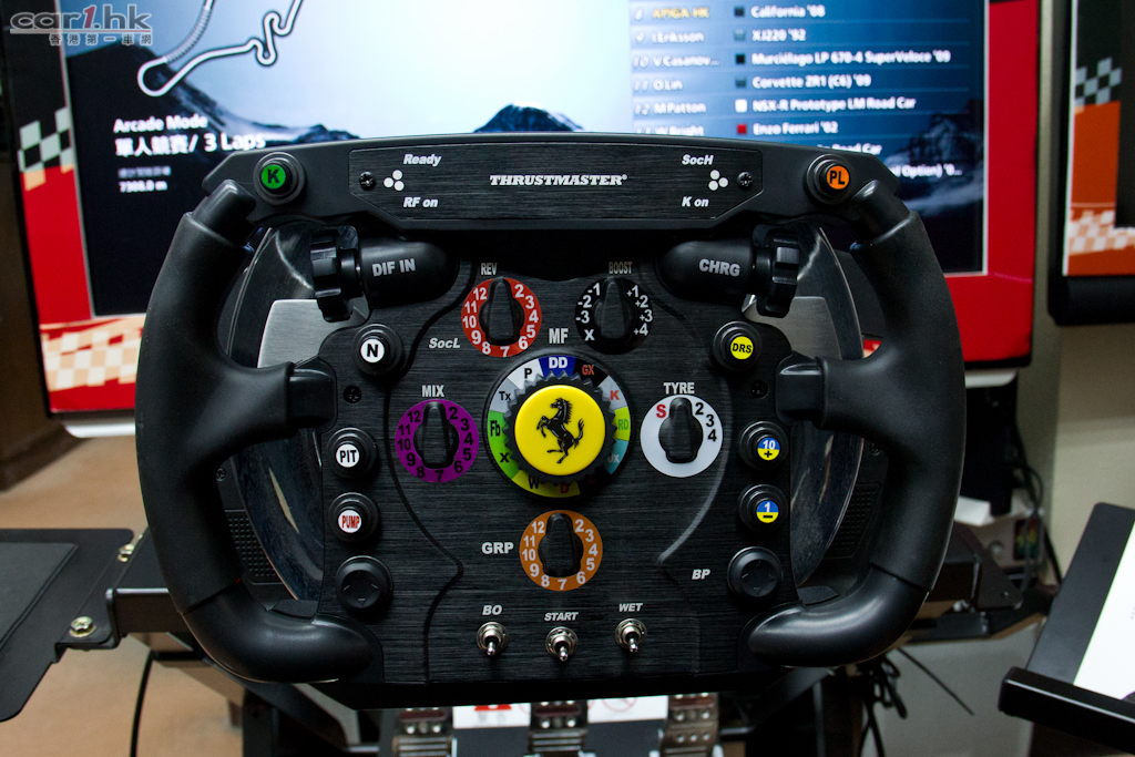 但這次主要是試玩最新的 Thrustmaster T500RS 軚盤及 Th8RS 波棍。Thrustmaster T500RS 設有大型轉檔撥片,軚盤的按鍵十分齊全,操作輕鬆。在握感上做得不錯,厚度較粗和使用環保樹脂烤漆,感覺不單單是握著一塊冷冰冰的「鐵」,FANS 更可以自己 DIY 真皮包裹。進入遊戲後,軚盤轉向時的感覺十分實在,可媲美駕駛真車般,比起其他一隻手指尾就能轉動的鬆散軚盤,駕駛感差天共地。在遊戲時與其他車碰撞,或因車速過快而推頭和甩尾時,軚盤傳到手中的震動效果相當到位,就像駕駛真車時需要「鬥力」,十分爽與逼真。