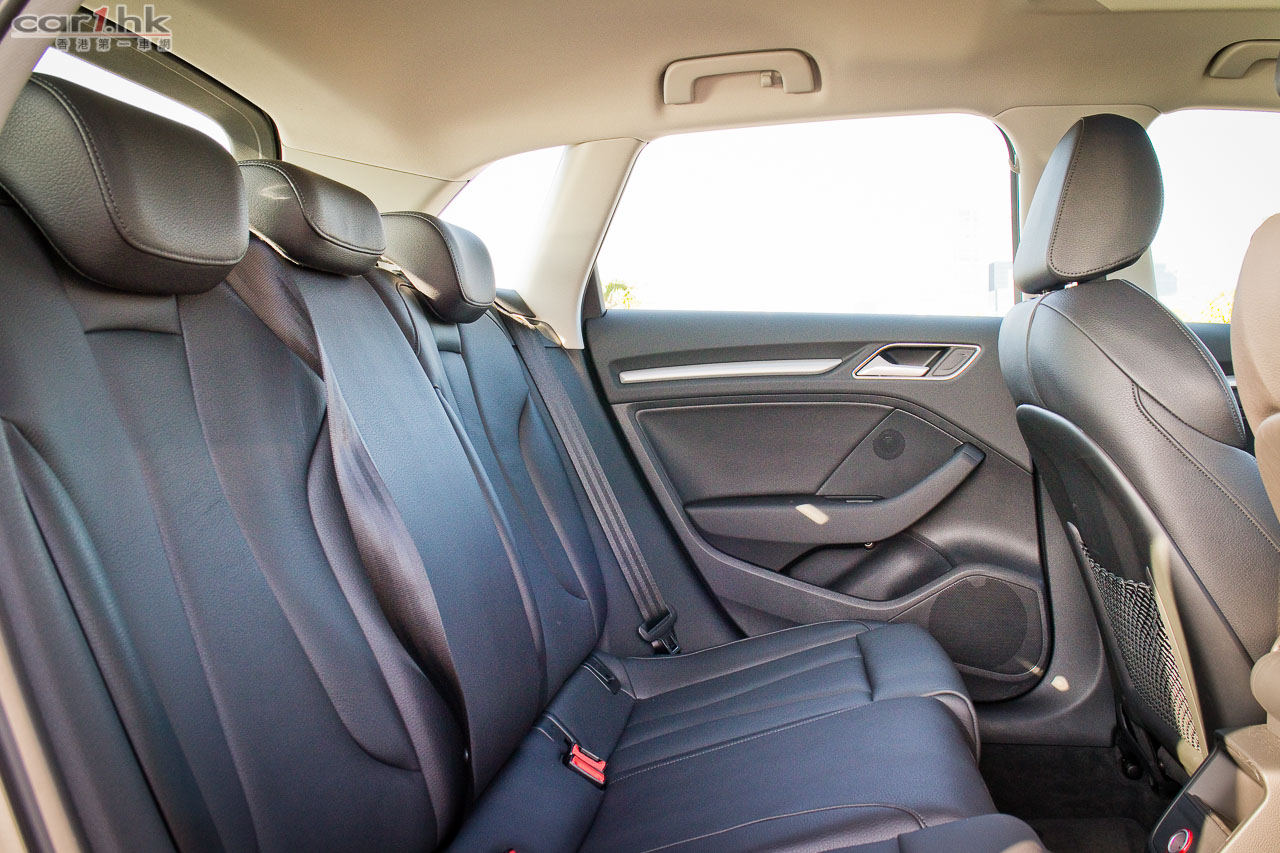 這部 A3 Sportback 作出了優惠之餘,車身內外都是添加了 Option 而來,外裝加了 S Line 包圍套件,同時配上了 17 吋 15 幅式運動化輪圈。新車應用了 Xenon Plus 頭燈,它內置了 LED 日間行車燈。車頭、車尾的 S Line 泵把令這部車 Sporty 不少。內裝方面,備有、三幅式真皮軚盤、電動天幕、金屬鋁質裝飾、MMI 5.8 吋系統、藍牙音響和電話免提系統、免匙著車系統、前座四段腰背調校運動化座椅等等。A3 除了賣設計賣科技外,車廂內的舒適性也不錯,後座的空間很寬敞。尾箱在五座時擁有 380L,翻平後座可達至 1,220L,一般行李、摺合單車也可以放入。以設備來說,A3 Sportback 加上 S Line 內外俱備。動力系統方面,雖然平實,但是以一般日常應用其實很足夠。加上它備有 Audi Drive Select 不同行車模式供選擇,可因應駕駛者需要去設定引擎和波箱的行駛風格。這部車的設定以輕快為主,女仕們也可以輕鬆駕馭。以二十多萬的歐洲揭背小車來說,沒有太多挑剔的地方。不過這個價格只限 2015 年 12 月內出車。
