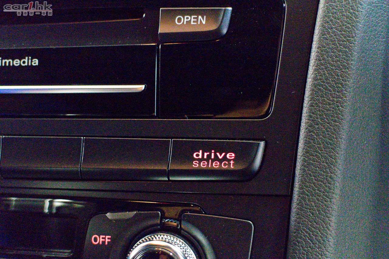 標準配備7前速S tronic波箱,使用高波段齒比,擁有高效能表現並有助節省燃油。駕駛者可以快捷的雙離合器自動波箱作自動轉波,或以波棍及軚盤轉波撥片作手動轉波。quattro恆久式四輪驅動系統以自動鎖定中央差速器為基礎,車身結構細小且輕,令前後車軸扭力能以40:60比率分布,傳動比率更可大幅度自由調節,最多可輸出70%的動力至前軸及85%的動力至後軸。系統的中央差速器更可與車輪扭力控制系統配合,透過制動碟所發出的選擇性輕微感應脈衝,令過彎動作更為矯捷。奧迪更提供可主動調配後輪間扭力輸出的運動化差速器以作選擇。