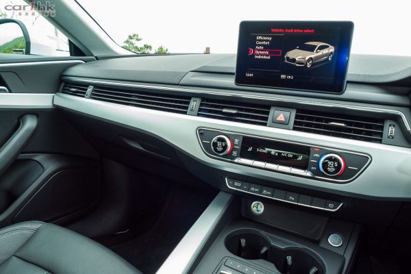 Audi Drive Select 系統,有慳油 Efficient、舒適 Comfort、跑格 Dynamic、全自動 Auto 和 Individual 模式來自定引擎波箱快慢,軚盤輕重和排氣聲浪。