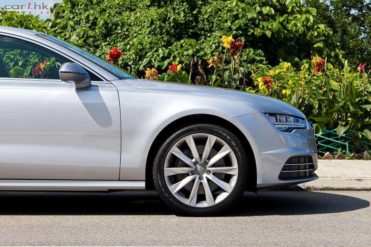 今次試駕的 A7 Sportback 是最入門版本,即使是入門版本其實設備一樣齊全,只是引擎換上最慳油的 1,984cc TFSI 渦輪增壓引擎而已。新車外觀跟過程沒有太大分別,最明顯是車燈改用全新設計,以 LED 作照明光源。在夜間或陰天的情況下較易看到新車在車燈設計上吸引之處。新車沒有了霧燈外露,其實是將它收藏到車頭燈之中,亦即是 Audi All-Weather Light 了。車身修長的 A7 Sportback,還將車身高度調低至 1,420mm,令它的跑感更強。