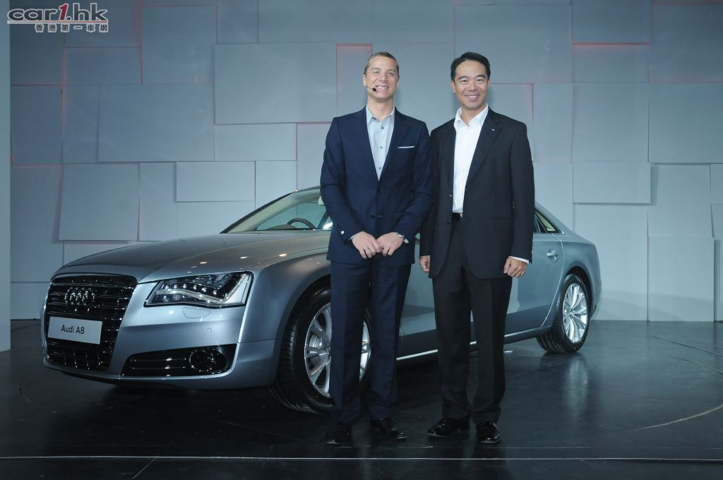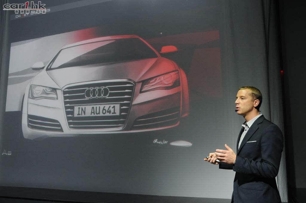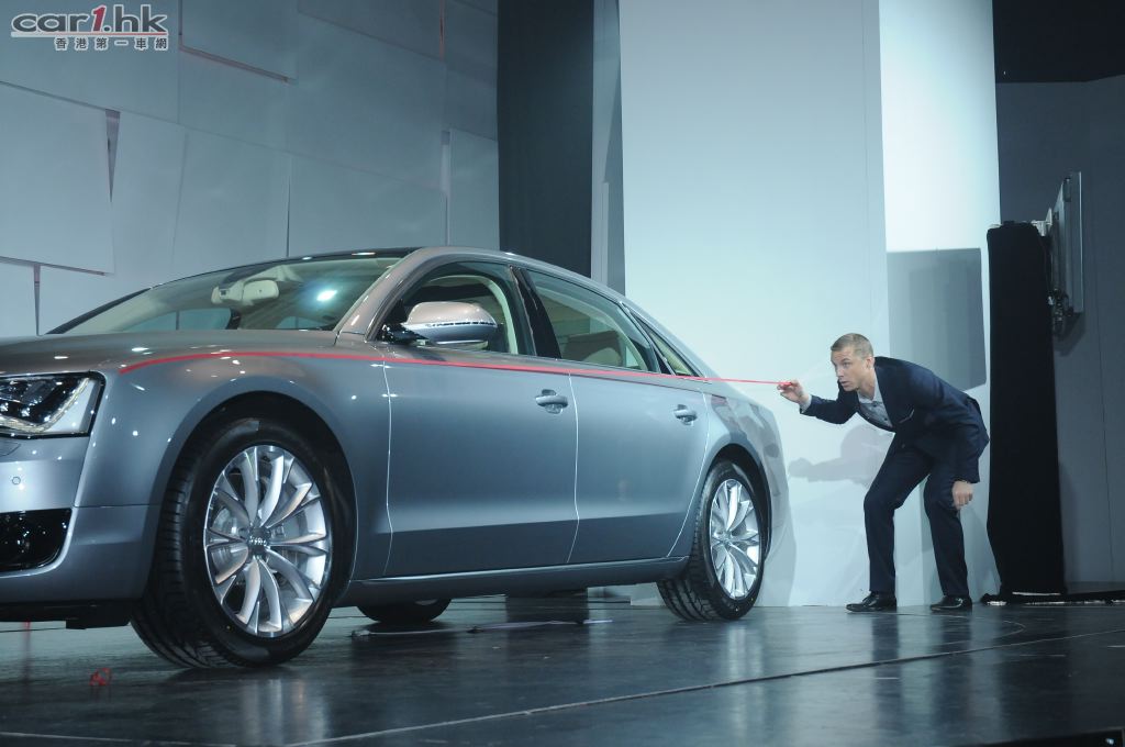 緊接是全新A8L的登場,而特意由德國遠道而來的A8設計師 Mr. Christian Winkelmann 由車廂步出與大家見面。他利用互動的方式,穿梭於車身四方,為大家剖析A8的每一個設計細節,由車身每一個線條,車頭燈的造型,以至空氣力學的影響均有所介紹,務求讓各與會者能對A8有更深入的了解!另外,Audi A8L已於2010年11月14日起,於奧迪香港旗艦陳列室展出。