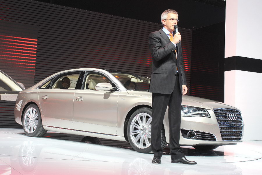 Audi 奧迪最近正式宣傳推出 A8L 長陣版本,同時會在明天舉行的北京國際車展 2010 ( Auto China 2010 )公開發表。這架使用 W12 FSI 引擎的 Audi A8L,車長約 5,267mm、軸距 3,121mm,而寬度是 1,949mm。Audi A8L 最大馬力超過 500 匹,扭力高達 63.7kgm,這架車會用上最新的 8 前速自動波箱,當然最耍家的 Quattro 四輪驅動都可以在它身上找到。今次奧迪以全鋁車身打 A8L 的車架,比鋼料車身輕 40%。這架 W12 引擎的 Audi A8L 由 0-100km/h 只需 4.9 秒,極速由電腦控制在 250km/h。