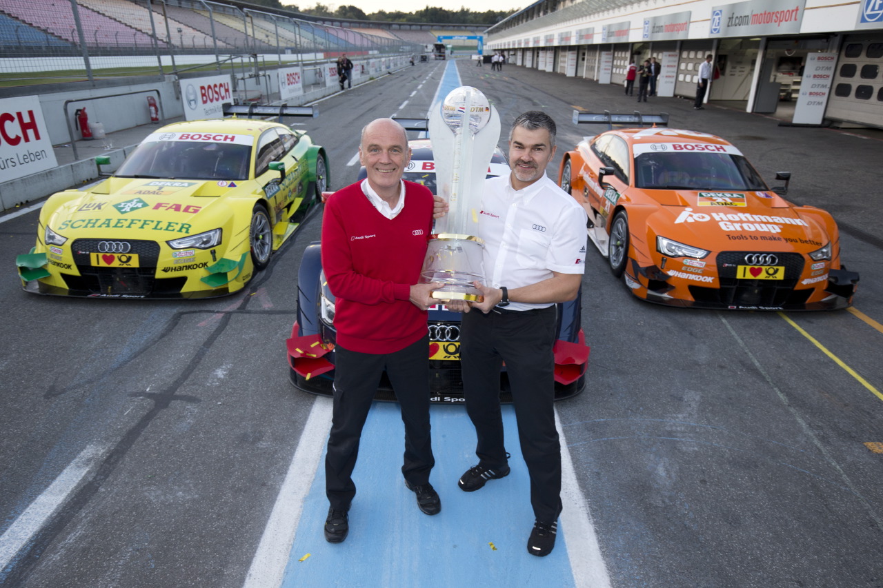 奧迪於德國Hockenheim舉行的德國房車大師賽(DTM)2014 總決賽中囊括三甲,並於155,000名觀眾面前從寶馬手中奪回最佳車廠的稱號。奧迪更於DTM開賽前以突破科技的無人駕駛技術震懾在場觀眾:Audi RS7無人駕駛概念車於賽道上以極速完成一圈。由Audi Motorsport總監Wolfgang Ullrich教授及Audi Sport DTM總監Dieter Gass帶領的團隊,加上今場比賽的精彩表現,車隊成功扭轉原本落後21分的劣勢並反領先30分。奧迪車隊於今年賽季共獲得409分,而寶馬及平治的分數分別為379分及222分。