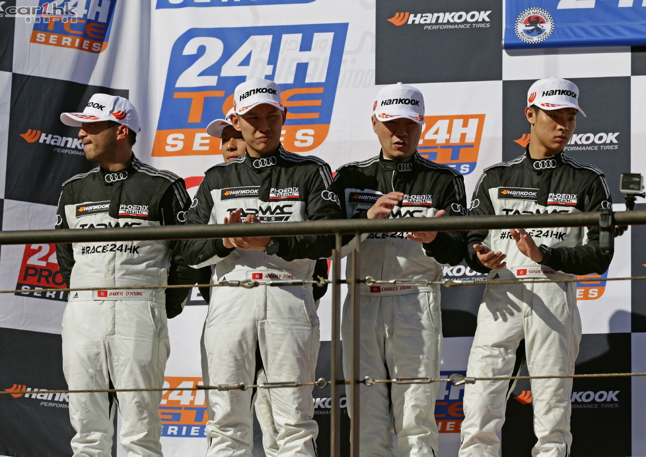 奧迪於GT4組別的第六圈賽事已開始領先,由關兆昌、李英健、歐陽若曦、唐偉楓和方駿宇組成的亞洲鳳凰車隊更展現香港賽車手的最強實力和毅力,經過24小時奮戰後以第一名衝線。但由於陣容中達到Pro-Driver(專業車手)級別的歐陽若曦及方駿宇的合共駕駛時間超出賽例上限,車隊被扣減兩圈成績,即本在24小時內完成達552圈的距離被降至只完成550圈,最終車隊只能屈居亞軍。而同屬Phoenix Racing車隊,由Philip Ellis、John-Louis Jasper、Joonas Lappalainen及Gosia Rdest四位歐洲車手組成的隊伍則以一圈之差,反超前勇奪桂冠。