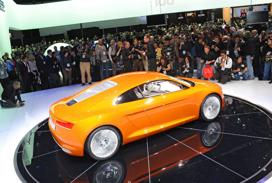 Audi 在美國有幾流行相信大家都知道,今次 LA AUTO SHOW 2009 Audi 為概念車 e-tron 換新衣才與大家見面,令大家耳目一新。Audi e-tron 賣點是車身上有 4 個電動馬達佈置在車身每個車輪上,由 0 – 100km/h 只需 4.8 秒內完成,最高時速為 200km/h,此車的鋰電池令 e-tron 最多行走 240km,暫定 2012 年開始量產。