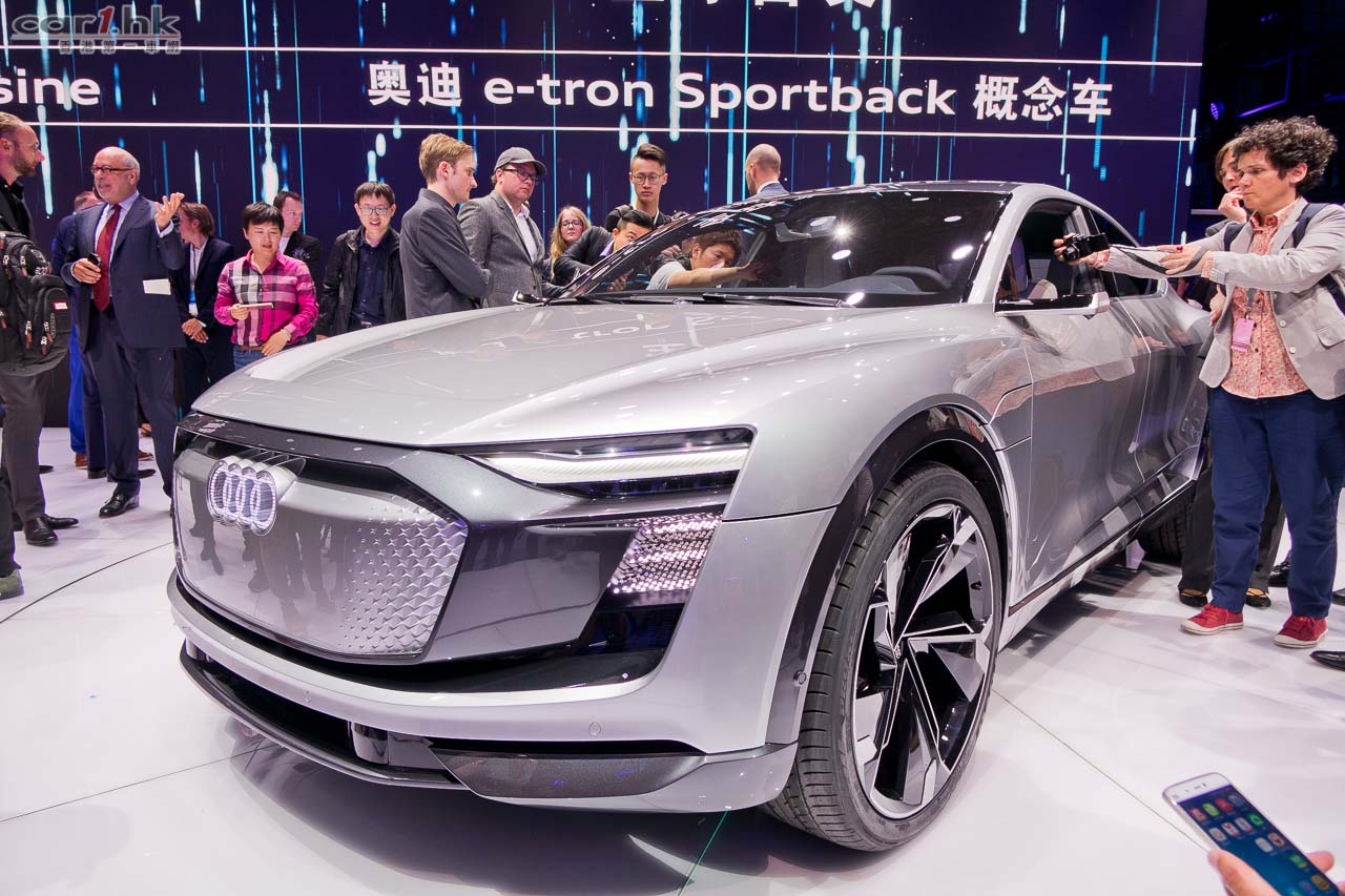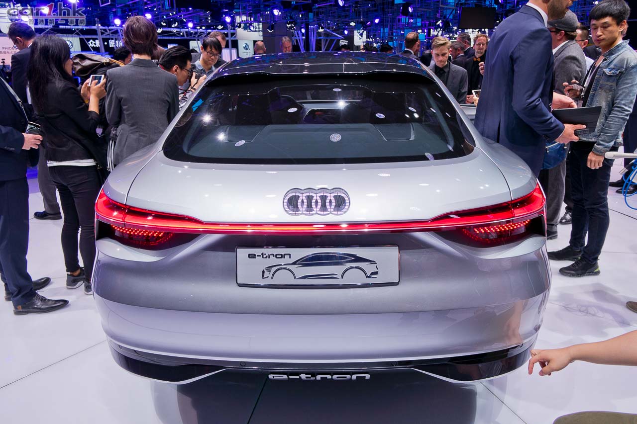 Audi 在上海車展推出 e-tron Sportback Concept,車身尺碼為 4,900 X 1,980 X 1,530mm,軸距為 2,930mm。廠方強調運用了大量空氣力學技術,並把鋰電池組放在重低的位置,令到重心更低,達到前 52 後 48 的完美比。