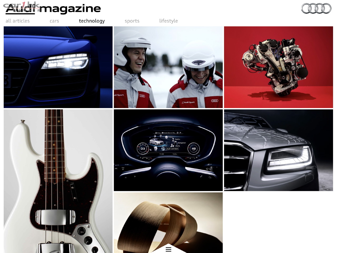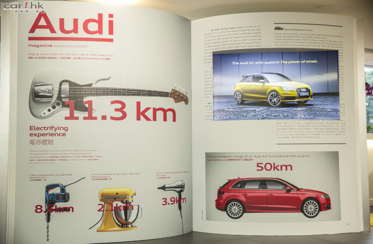 《Audi Magazine應用程式》內容環繞「汽車(Cars)、科技(Technology)、運動(Sports)、生活(Lifestyle)」四大主題,加上各種互動內容及體驗並定期更新,呈現品牌最新本地資訊,包括環球賽車賽事精華、新型號率先預覽及奧迪創新科技展示等。今期的「汽車」介紹於香港全新推出的S1 Sportback及A3 Sedan 1.4 TFSI ultra。「科技」介紹了奧迪全新的EA888引擎、「運動」則聚焦於Audi R8 LMS 盃,奧迪傳奇女車手Rahel Frey的訪問,及奧迪再度摘下桂冠的勒芒24小時耐力賽。最後的「生活」則讓讀者一窺大數據下的世界、未來流動性發展、城市設計的無限可能,和香港人如何在於寸金尺土之下創造最愜意的生活空間。