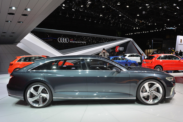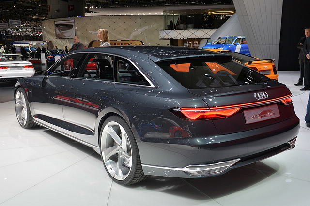 Audi 在日內瓦車展發表最新的 Prologue Avant 概念車,相比去年推出的 Coupe 版,Avant 的外觀變化不太,但卻使用了更多的鍍鉻飾條,使得車子更貴氣逼人;而且由擋風玻璃一直延伸至車尾的車頂線條設計優雅,看起來有點 Porsche Panamera 的掀背車感覺。至於車廂方面還是 Copue 版的無按鍵設計,只有幾個螢幕顯示行車資訊。動力系統則使用 3.0 公升雙渦輪增壓 V6 柴油引擎搭配插電式混合動力,可輸出綜合馬力為 455 匹及 750 牛頓米扭力,配合 8 速波箱,由靜止加速至 100km/h 只需 5.1 秒,而純電模式可行駛 53.1 公里。