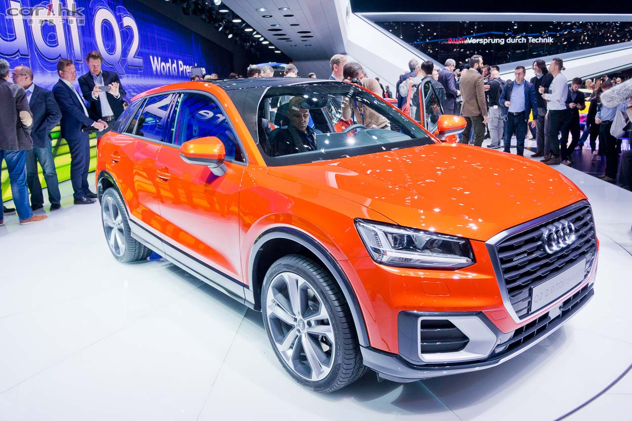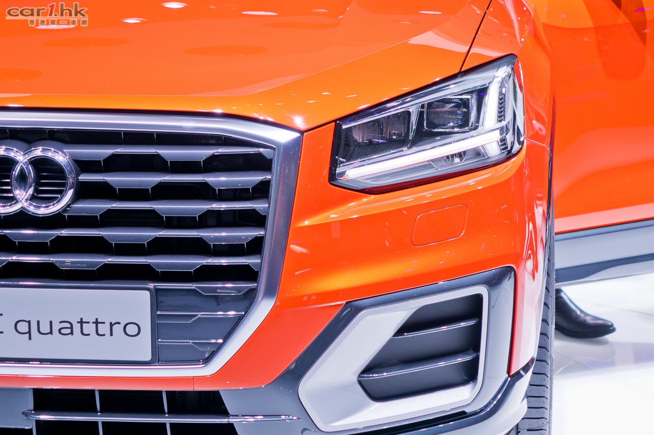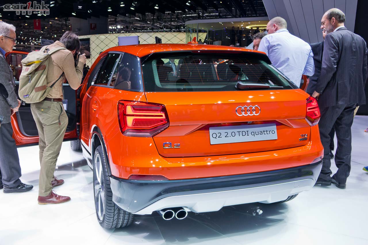 Audi 在日內瓦車展登上大舞台的正是傳聞小型 SUV 旅行車 Q2,看來 Audi 一心擴展旅行車戰線,力搶潛力無限的旅行車市場。Audi Q2 體積為 4,191 X 1,794 X 1,508mm,軸距 2,595mm,重量只有 1,205kg,相比 Audi Q3 外型細小了一點點。為了讓它看起來很不同,Q2 用上了全新的超大六角型鬼面罩,泵把加入大型入風口,車燈也是用上新設計款式。C 柱十分粗,有點像大佬 R8。Q2 沒有玩圓潤設計,車頭引擎蓋、泵把、車尾都找到很多骨線,這部車雖然小巧,但是卻有著硬朗賣相,是一部「真」旅行車。
