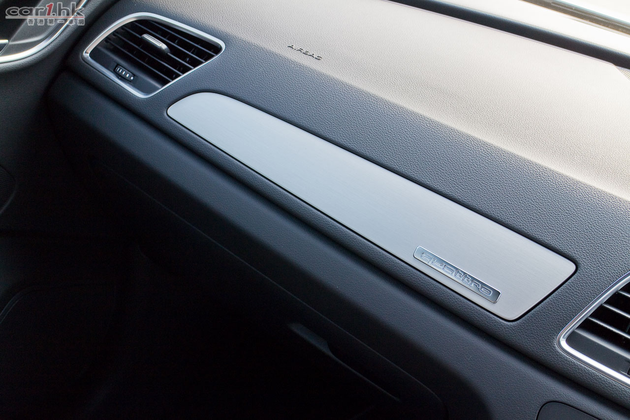 這部 Q3 Black Edition 是基建於 2.0 Quattro 版本身上,而它的基本配置跟普通版一樣,動力系統方面亦都是一樣。Q3 Black Edition 在 S line competition 注入黑色元素,如鬼面罩、車外的窗框、車頂旅行架、尾翼、倒後鏡外殼都是黑色。車箱方面,車椅同樣是 S line 運動型座椅,不過就改用兩隻不同物料製作,同時以光、啞黑的物料作出視覺上的效果。車頂亦是黑色,由內到外都注入大量黑色沉默風格,唯獨是試駕車是銀色車身,如果改用黑色車身的話,會更加有型。Audi Q3 2.0 Quattro Black Edition 改用運動懸掛系統,高度下調多 20mm,輪圈亦以 19 吋作基本配置,有利於高速行車時的穩定性。售價方面 HK$447,600 起,如果是鍾情原廠配置,又不太喜歡普通版,Black Edition 會是個另類選擇。