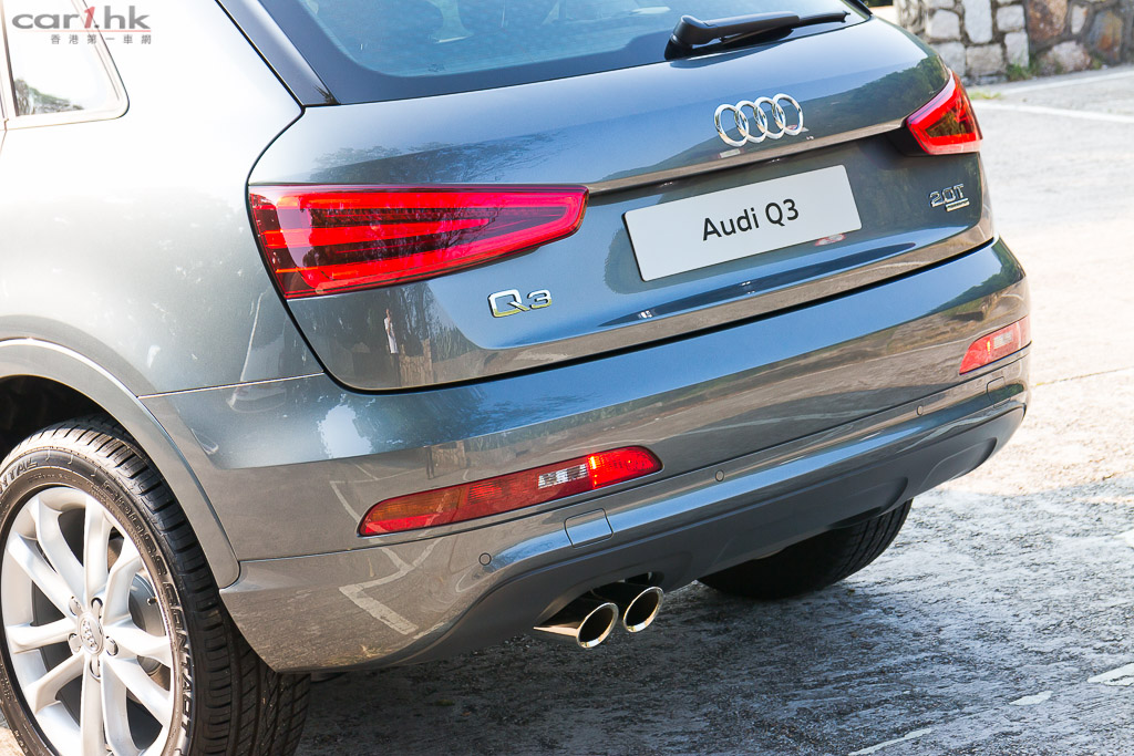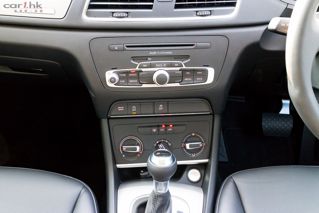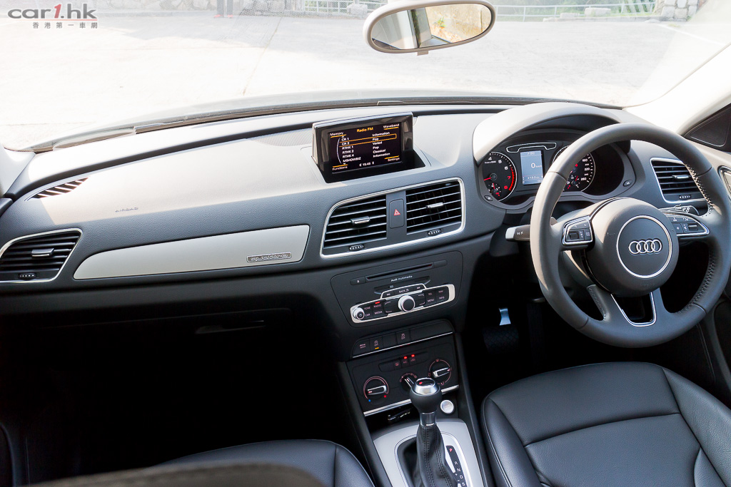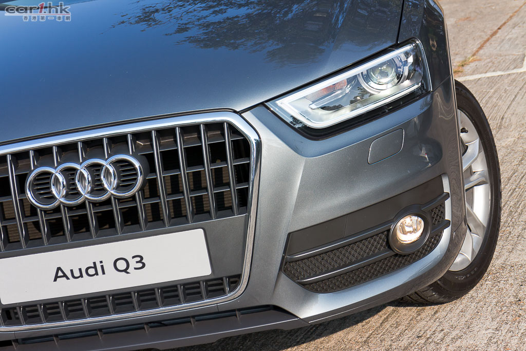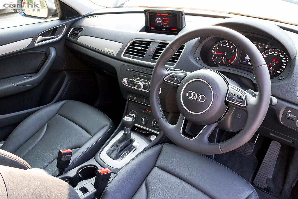 2014 新版 Q3 加了大量設備,首先由 17 吋合金輪圈升級至 18 吋,令行車時循跡力更佳,還標準配備了 Xenon-Plus 頭燈連 LED 日間燈。而且這次改變更以車廂享受為主,增添了免匙啟動系統和 Audi Drive Select 系統;以及可使用多媒體播放器可支援 USB、iPod 及 iPhone 透過藍芽接聽電話與播放音樂,座椅亦標配了電動調校功能,可隨時舒適地享受影音。其他如全天候電動天幕天窗、MMI 多媒體系統連 6.5 吋彩色屏幕及電話免提功能更是一應俱全。同時,Q3 車廂寬敞,後排的頭部及腿部空間十分充裕;尾箱的標準容量更高達 460 公升,已足夠擺放一輛摺車完全沒有問題,還可放平後座把容量提升至 1,365 公升。2014 版 Q3 設備更豪華,實用性一流,但車價卻不升反跌,便宜約 20,000 元,以優惠價 $409,800 推出,出色性價比自然吸引精明消費者。