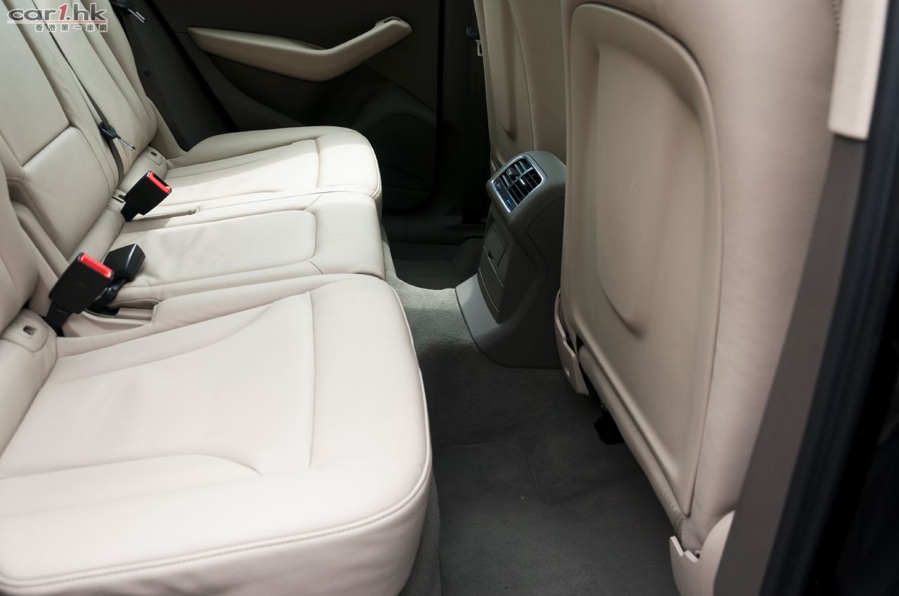 Q5 雖然屬於入門級 SUV,不過後座的乘坐空間寬闊,就算 177cm 的乘客仍有充裕的腿部空間,還可縱向滑動 10 厘米;至於車尾容量 540 公升不算驚喜,但把後座摺疊後,行李箱容量即時提升至 1,560 公升,超越入門級水準,另外,配備了分隔網,更加方便放置物品。但全車最注目的是全景觀電動玻璃天窗,幾乎覆蓋整個車頂,車廂更為光亮,為駕駛者帶來更開明環境。內籠設備方面包括真皮座椅,前座擁有全方位電調校,駕駛席還附有記憶功能;MMI 系統提供娛樂資訊,音響系統可行支援 SD 卡放音樂;高解像 LCD 屏幕、自動恆溫冷氣、 多功能顯示屏和軚環 +/- 手動轉擋撥片。