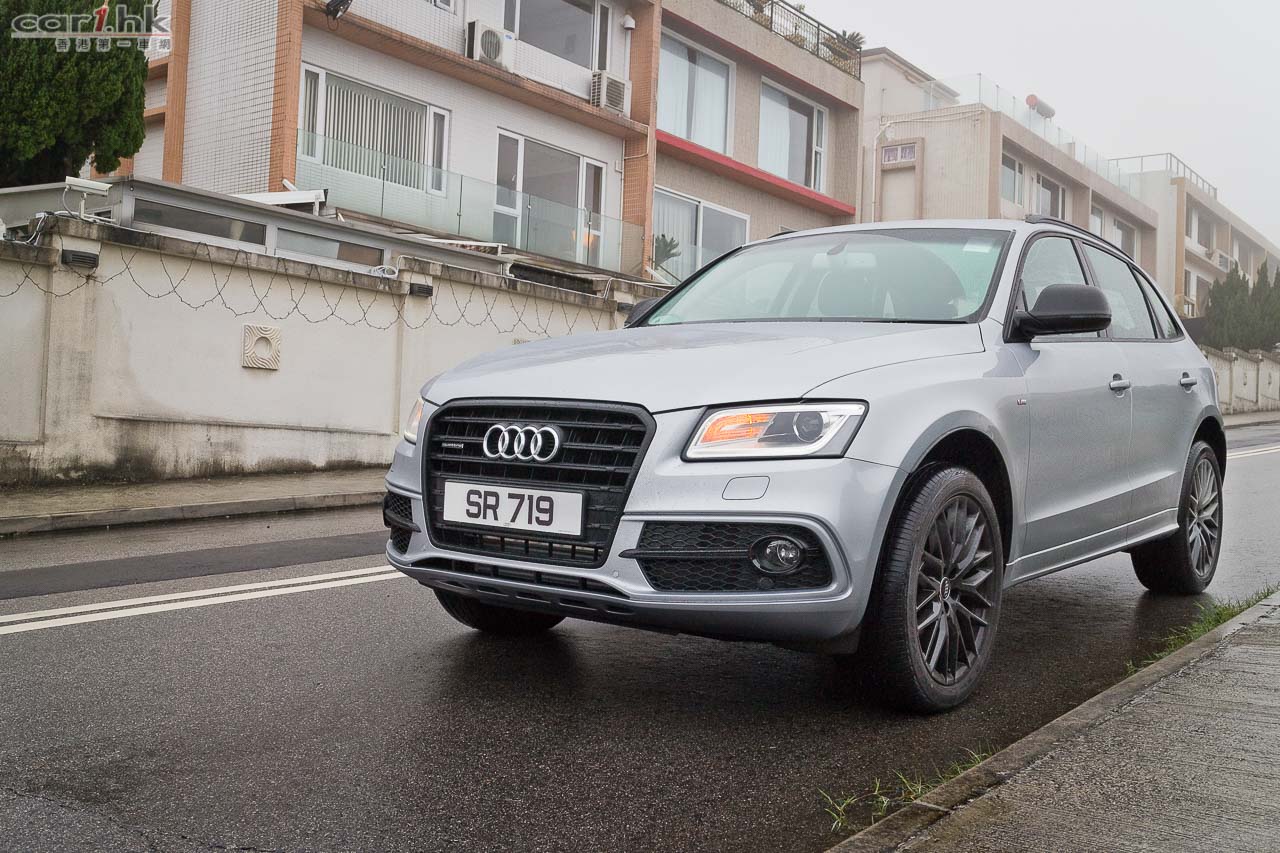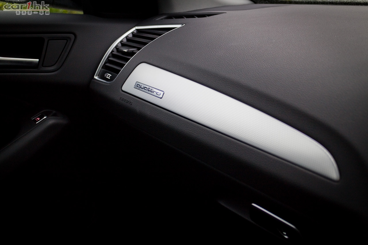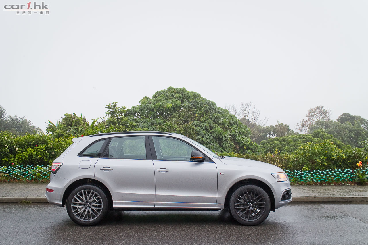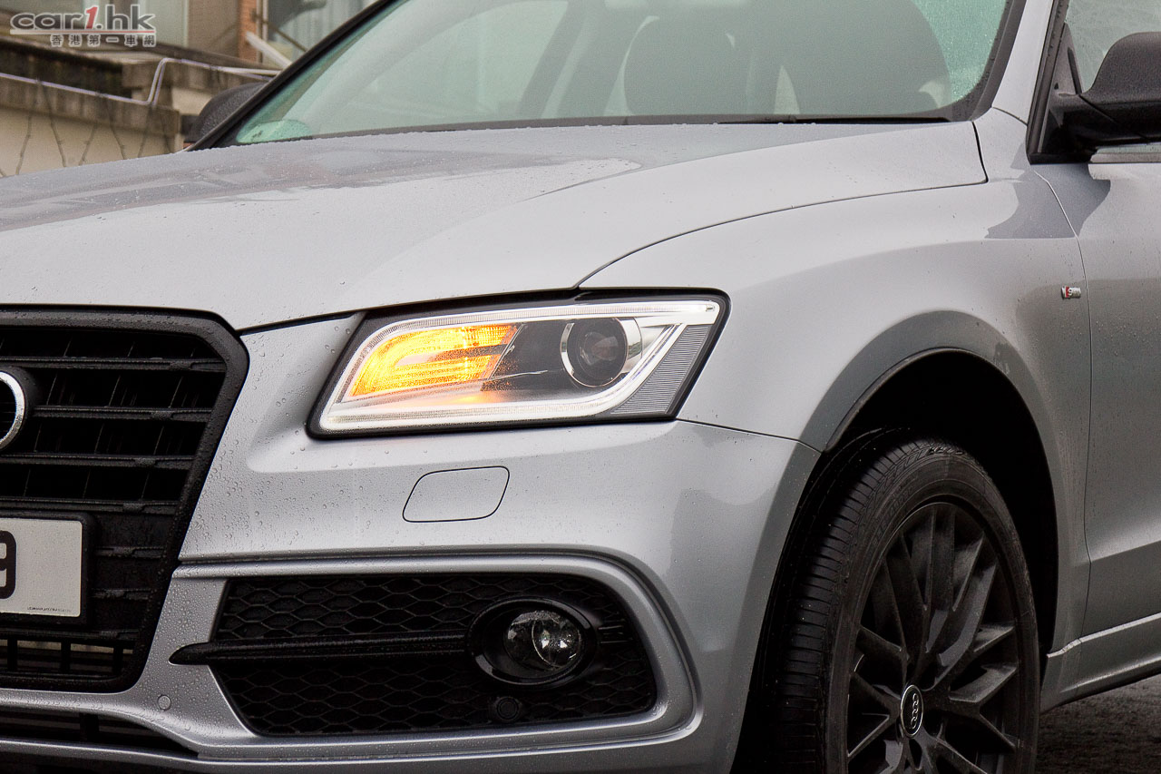 以筆者的角度來看,Black Edition 配全黑車身是最「正」的,不過今次試駕車是銀色車身,讓大家更易看到這部 Q5「黑」在那裡。它跟過往的 Audi Black Edition 一樣,擁有重新設計的全亮黑車頭家族式面罩,添上粗黑電鍍橫桿,風格十分低調沉實。車門加入較深的骨線,門邊用上印有 S 系列徽號的鋁質門鑑。車頭泵把、兩側加配的裙腳和尾泵把亦用上跑化設計,視覺上令車身更貼近地面,而尾頭燈組合已包括了圓角設計的 Xenon Plus 頭燈及 LED 日間行車燈,日夜間行車都十分搶眼。車頂配備亮黑色鋁合金行李架,已配置全天幕玻璃天窗,提升車廂內的開揚感。黑色 20 吋十幅式 Y 形設計鋁合金輪圈已是標準配置,連高性能(255/45 R20 輪胎)。駕駛艙內的中控台以 Aluminium satellite 鋁合金飾板作裝潢,觀感高科技和年輕。車廂座椅以 Milano 皮革包裹,承托力不俗,前座擁有電動調校功能,可作四段調校,而後座則配有 ISOFIX 兒童安全扣環。6.5 吋全彩顯示屏 MMI 系統亦是 Audi 車主很喜愛設備之一,這部 Q5 Black Edition 同樣擁有,只需使用轉盤和快捷鍵即可完成整個系統操作。Audi Drive Select 駕駛選項系統以配合個人需要而選擇「舒適」、「自動」及「動感」駕駛模式、電動轉向輔助系統、電動泊車鎖定、Start/Stop 引擎自動熄匙系統及強化動感的 Dynamic suspension 懸掛系統等亦一應俱全。Audi Music Interface 及藍牙免提裝置已是標準配置,車主亦可額外選裝升級至 Bang & Olufsen 環迴立體聲音響系統和MMI navigation plus 導航系統。