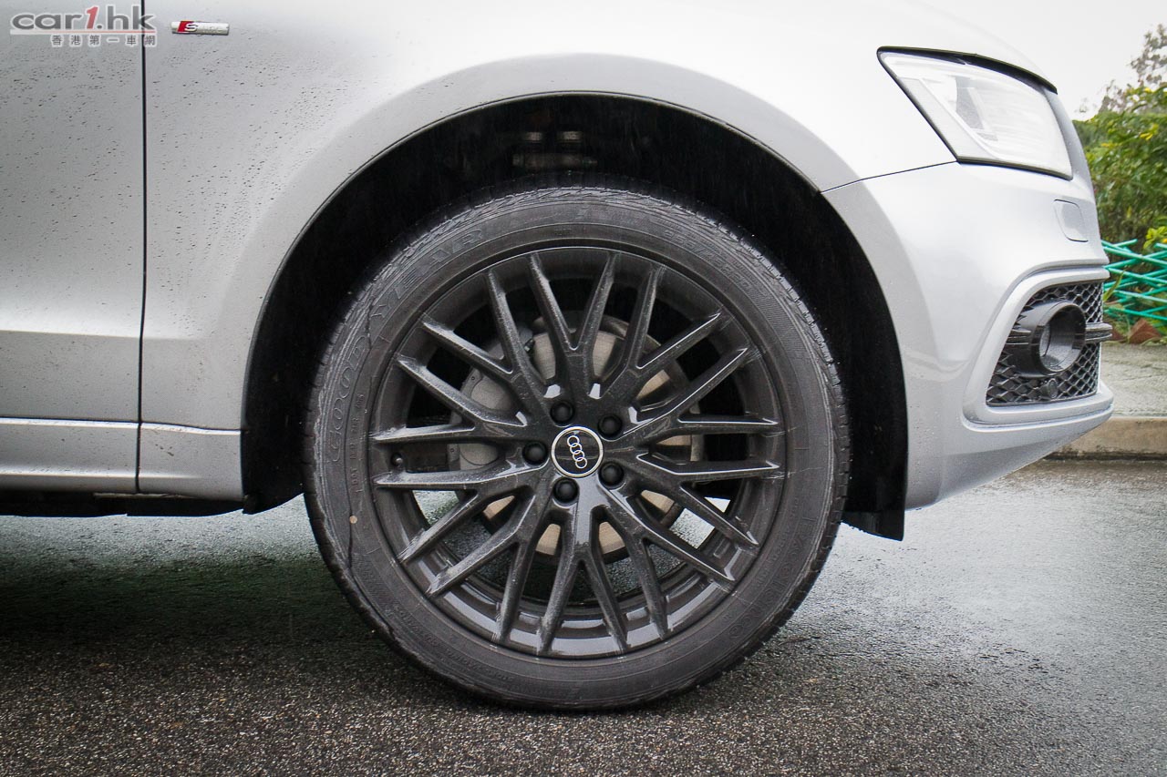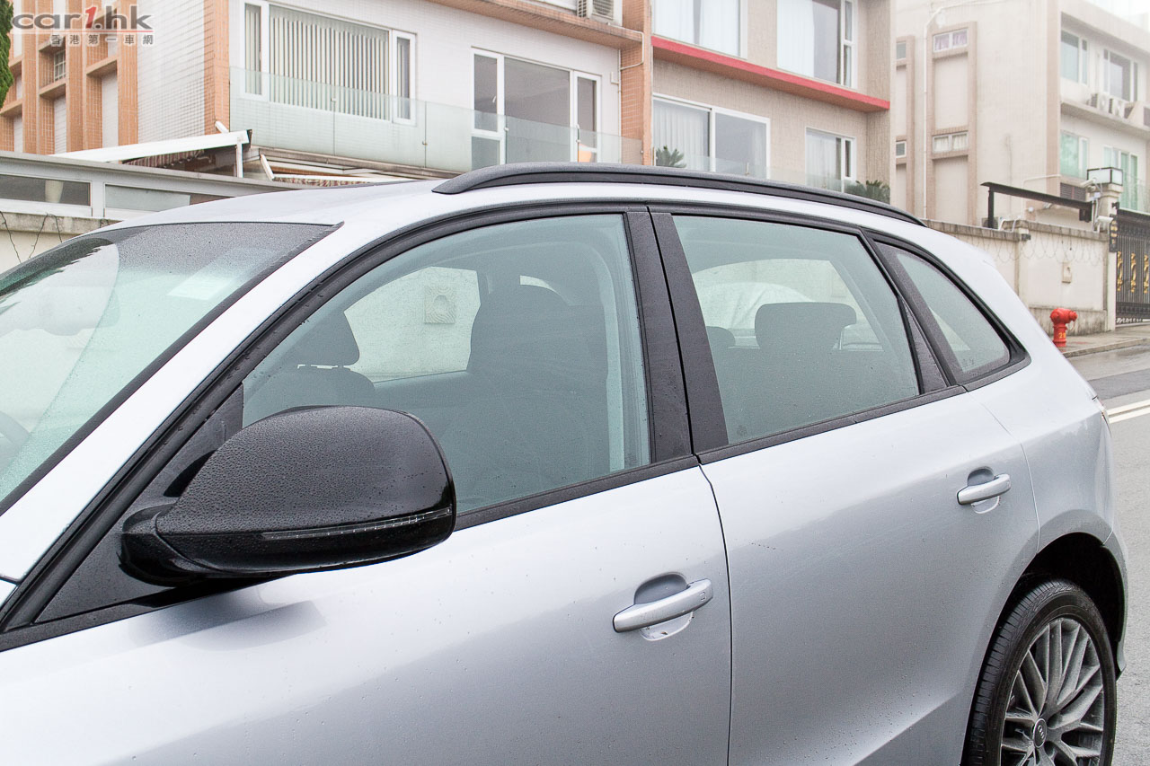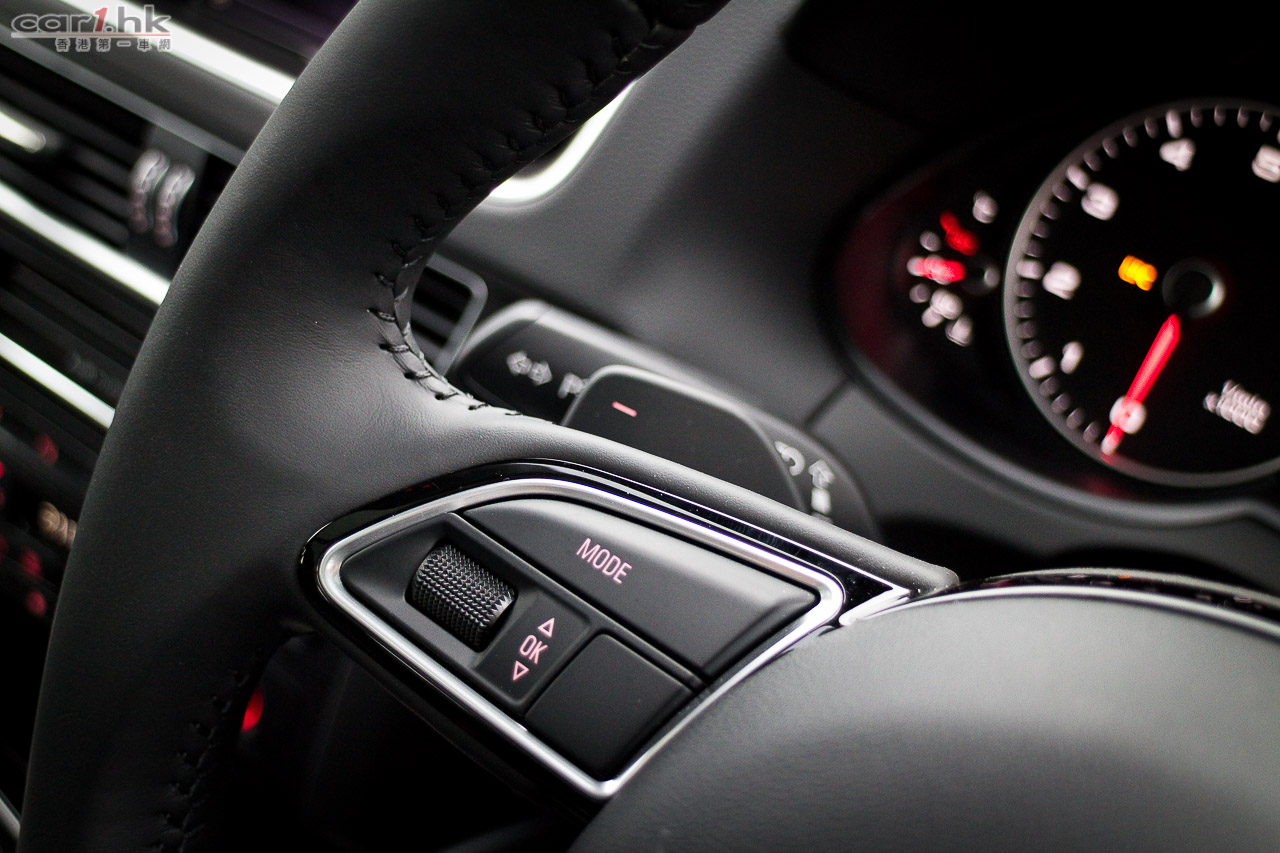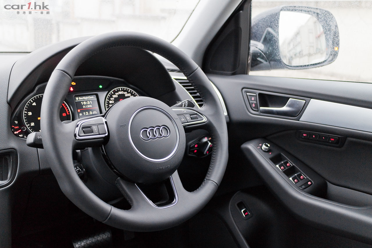 以筆者的角度來看,Black Edition 配全黑車身是最「正」的,不過今次試駕車是銀色車身,讓大家更易看到這部 Q5「黑」在那裡。它跟過往的 Audi Black Edition 一樣,擁有重新設計的全亮黑車頭家族式面罩,添上粗黑電鍍橫桿,風格十分低調沉實。車門加入較深的骨線,門邊用上印有 S 系列徽號的鋁質門鑑。車頭泵把、兩側加配的裙腳和尾泵把亦用上跑化設計,視覺上令車身更貼近地面,而尾頭燈組合已包括了圓角設計的 Xenon Plus 頭燈及 LED 日間行車燈,日夜間行車都十分搶眼。車頂配備亮黑色鋁合金行李架,已配置全天幕玻璃天窗,提升車廂內的開揚感。黑色 20 吋十幅式 Y 形設計鋁合金輪圈已是標準配置,連高性能(255/45 R20 輪胎)。駕駛艙內的中控台以 Aluminium satellite 鋁合金飾板作裝潢,觀感高科技和年輕。車廂座椅以 Milano 皮革包裹,承托力不俗,前座擁有電動調校功能,可作四段調校,而後座則配有 ISOFIX 兒童安全扣環。6.5 吋全彩顯示屏 MMI 系統亦是 Audi 車主很喜愛設備之一,這部 Q5 Black Edition 同樣擁有,只需使用轉盤和快捷鍵即可完成整個系統操作。Audi Drive Select 駕駛選項系統以配合個人需要而選擇「舒適」、「自動」及「動感」駕駛模式、電動轉向輔助系統、電動泊車鎖定、Start/Stop 引擎自動熄匙系統及強化動感的 Dynamic suspension 懸掛系統等亦一應俱全。Audi Music Interface 及藍牙免提裝置已是標準配置,車主亦可額外選裝升級至 Bang & Olufsen 環迴立體聲音響系統和MMI navigation plus 導航系統。