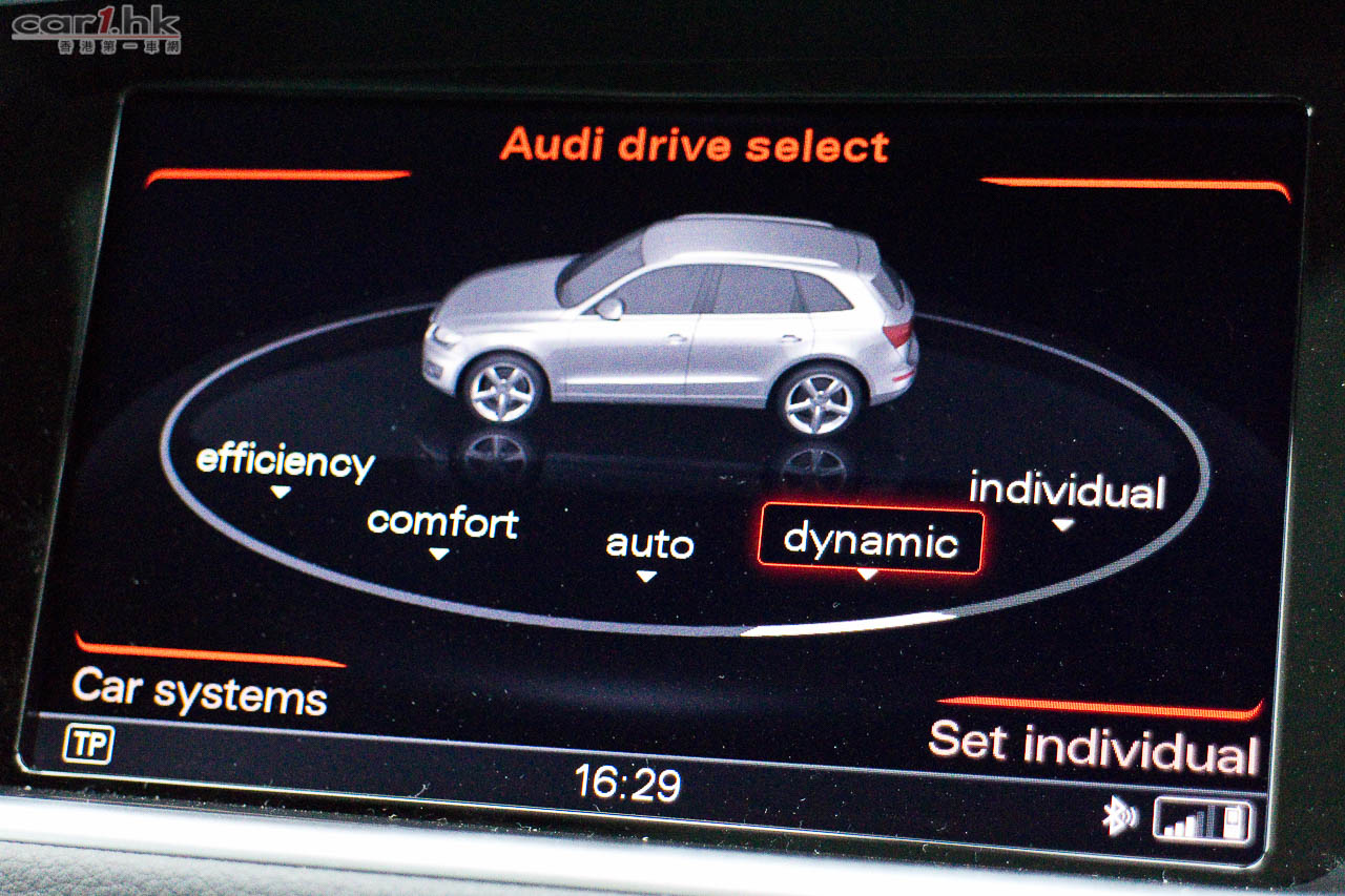 Audi Drive Select 駕駛選項系統以配合個人需要而選擇「舒適」、「自動」及「動感」駕駛模式。