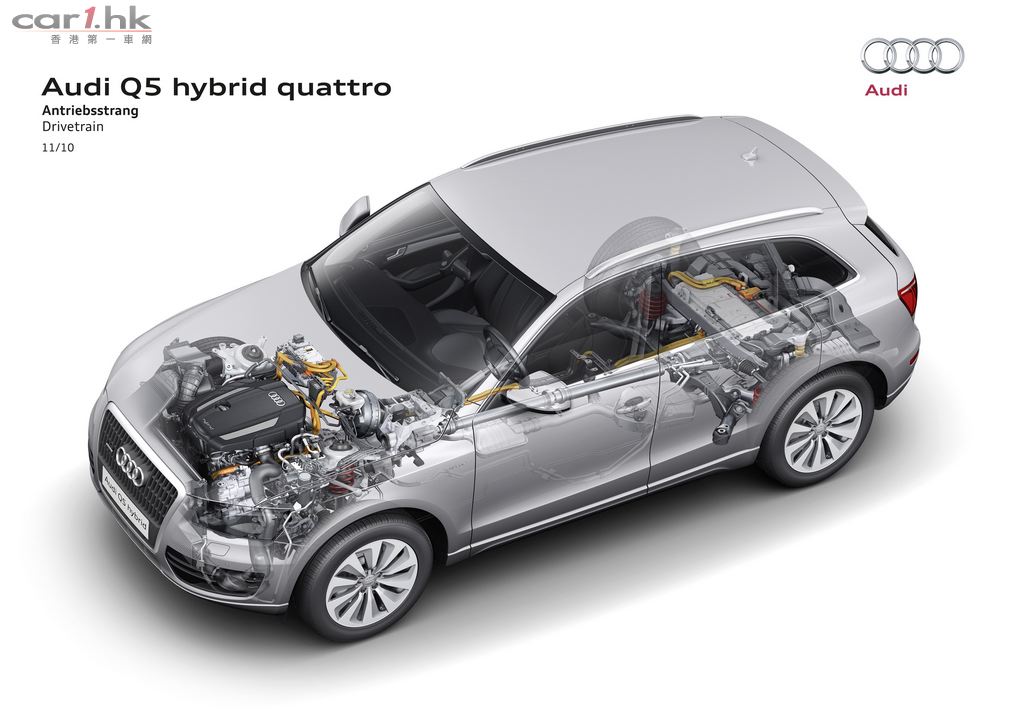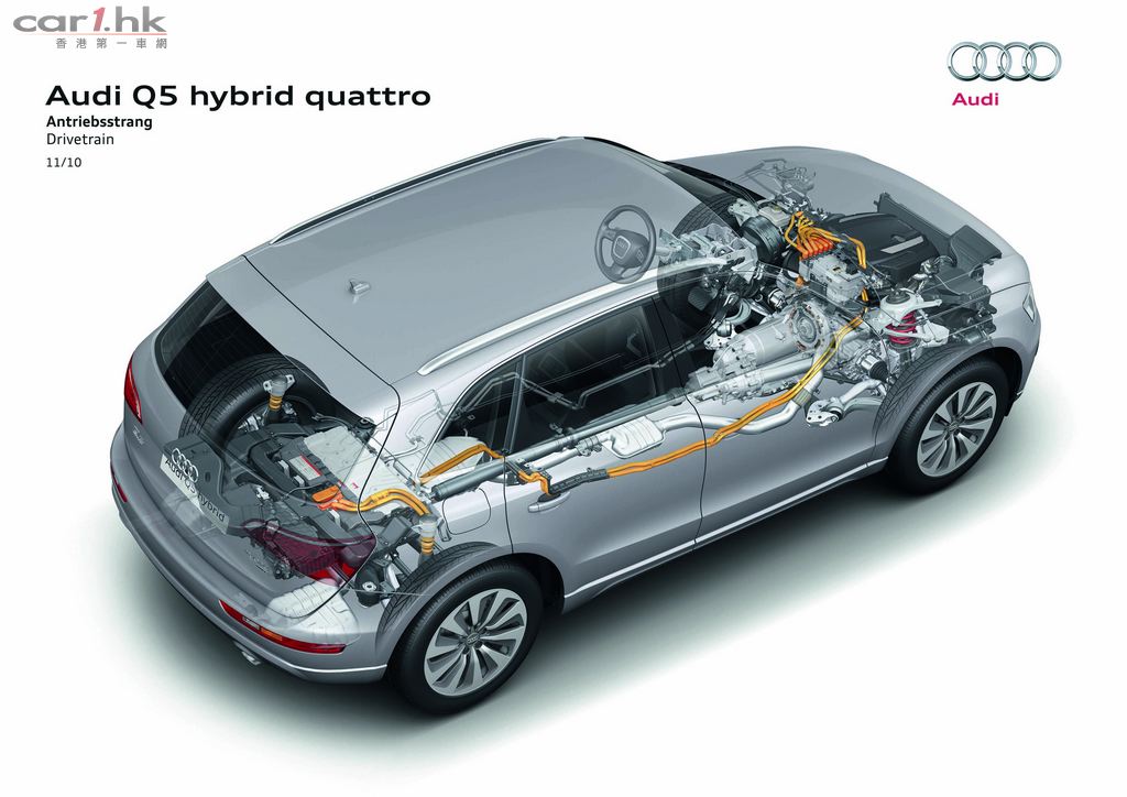 如果說 A3 e-tron concept 以展示 Audi 技術實力的情報科,那麼 Q5 hybrid quattro 肯定隸屬行動組別,因為在車展上廠方已經表明這部新車落實了量產計劃!Q5 hybrid quattro 的 2.0 TFSI 汽油引擎,以並聯(Parallel)形式連接電動馬達,共同輸出最高 245hp 馬力和 354lb-ft 扭力。由 0-100km/h 加速只需 7.1 秒,極速達 222km/h。以 60km/h 行車,它可以在純電力的情況下行走 3km 路程;油電系統全面啟動下,它的速度可達 100km/h 或以上。若用二氧化碳排放量計算,Q5 hybrid quattro 是不超過 159g/km。根據歐洲標準循環(NEDC)的準則計算,平均耗油量在 7L/100km 之內,這是一般 SUV 車款難以辦到的。